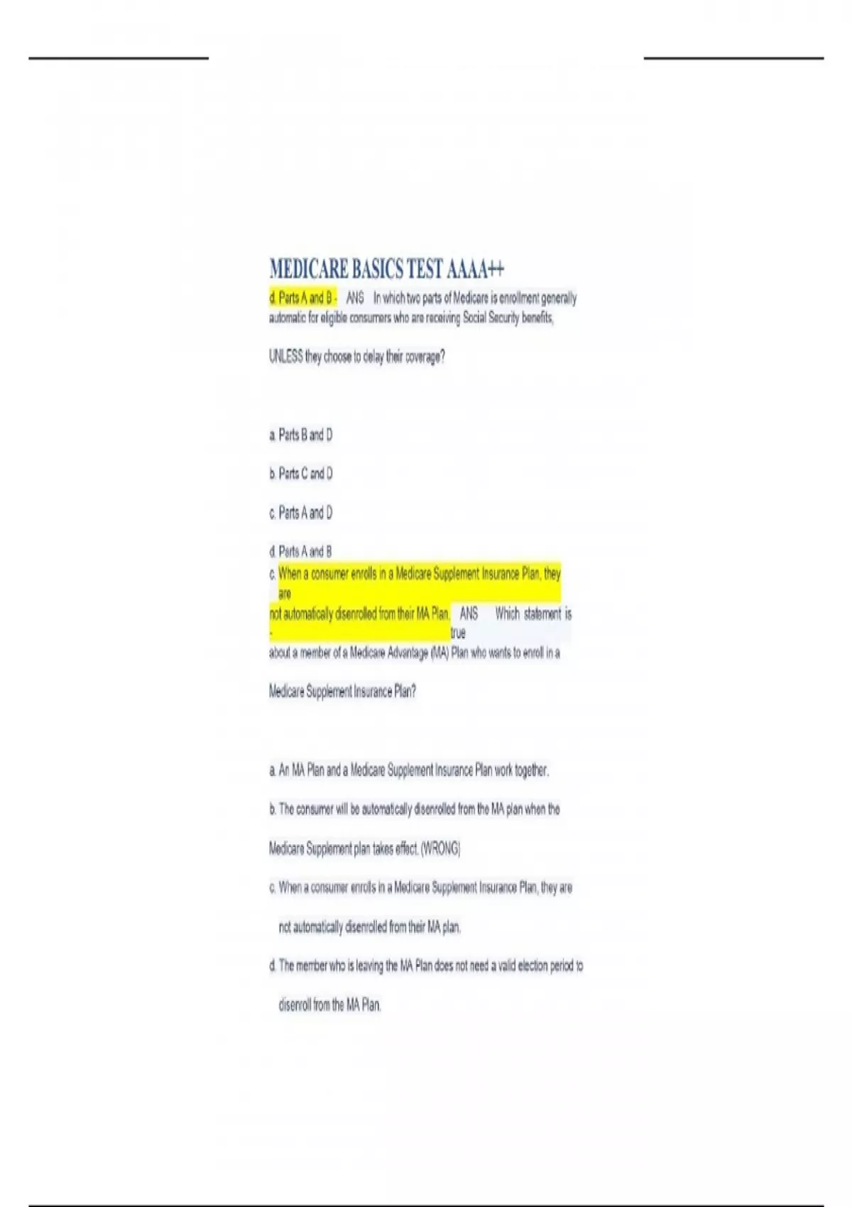 UHC MEDICARE BASICS TEST (including Medicare Advantage, Prescription Dug and Medicare Supplement Plans)