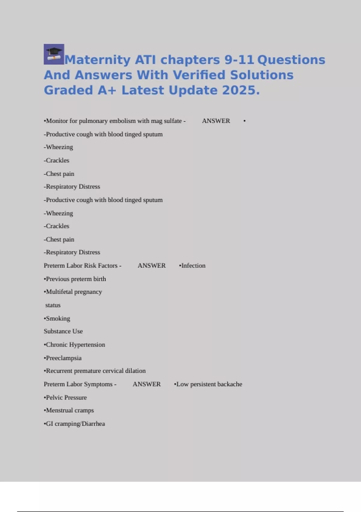 Preterm Labor Symptoms - ANSWER •Low persistent backache