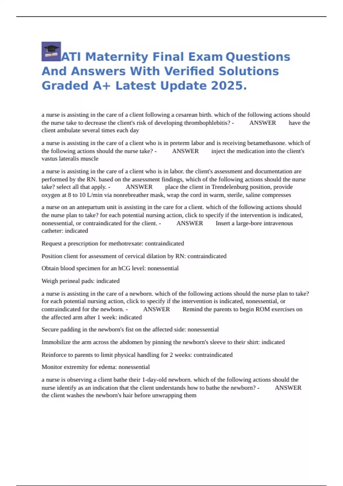 contraindicated for the newborn. - ANSWER Remind the parents to begin ROM exercises on