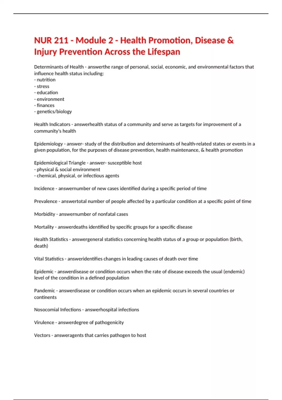 NUR 211 - Module 2 - Health Promotion, Disease &