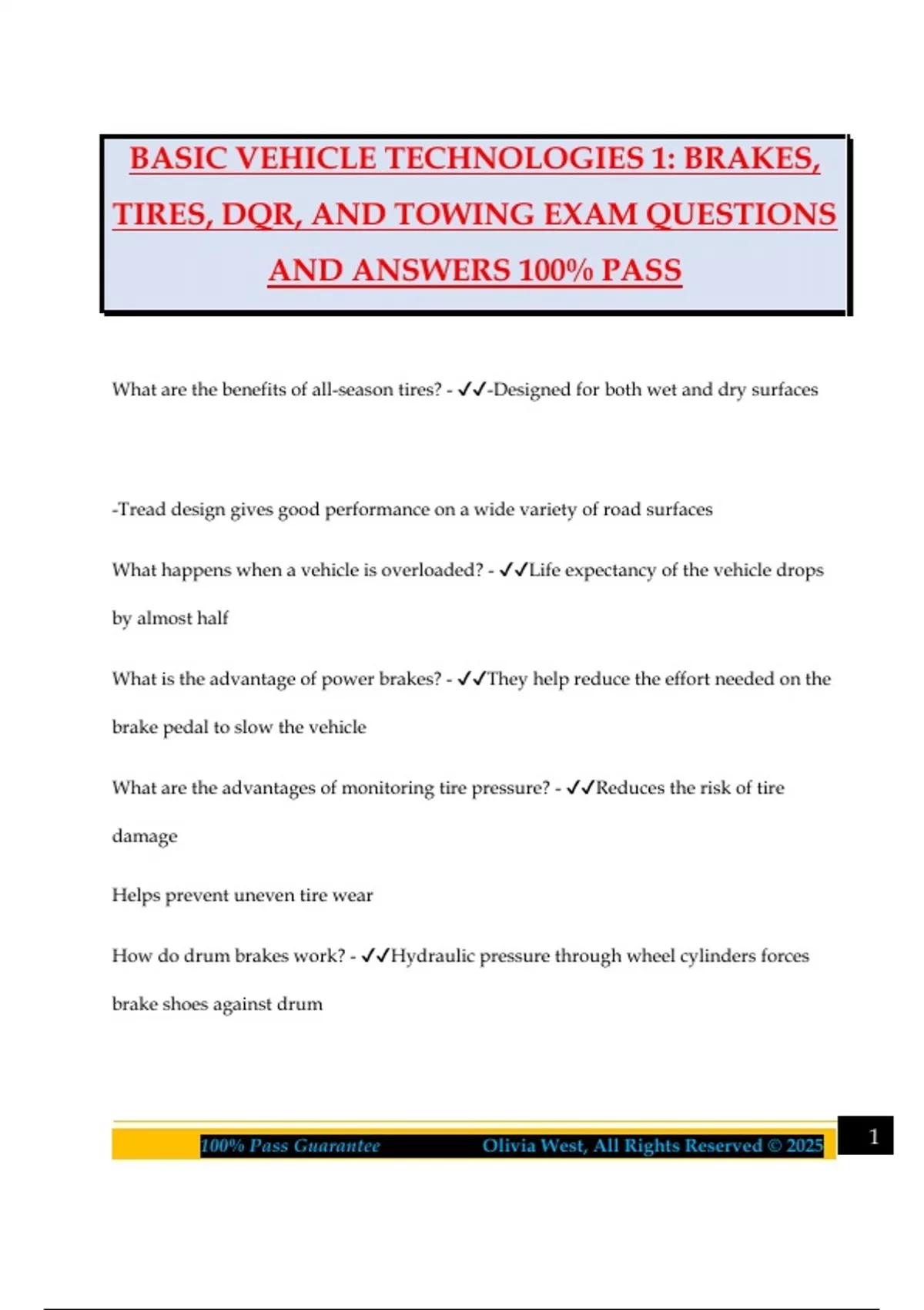 100% Pass Guarantee Olivia West, All Rights Reserved © 2025 1