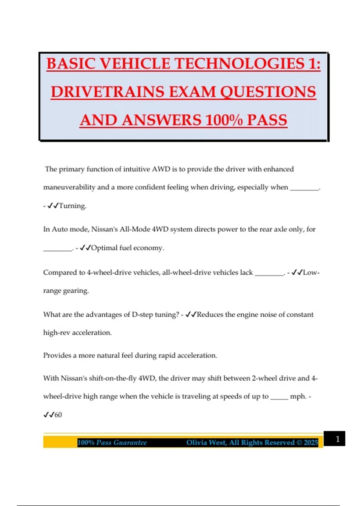 100% Pass Guarantee Olivia West, All Rights Reserved © 2025 1