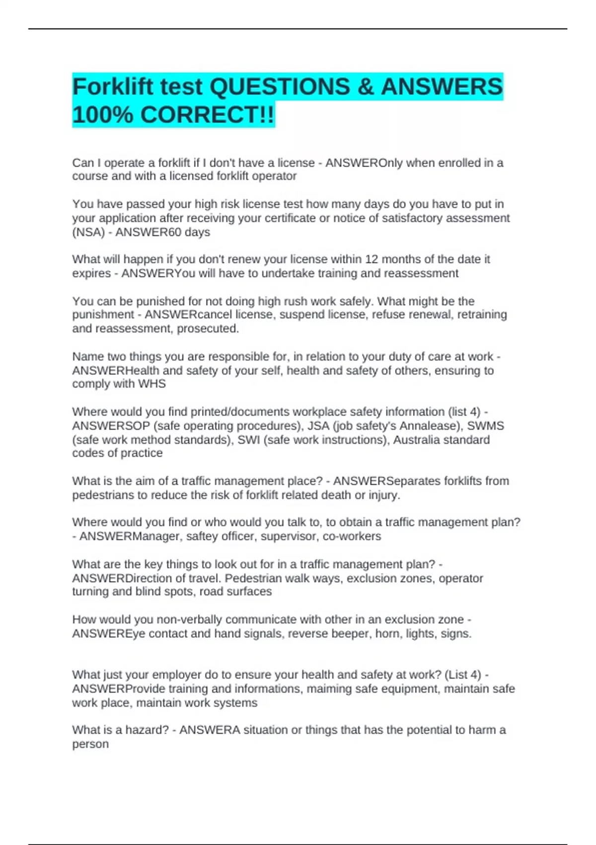 ANSWERSOP (safe operating procedures), JSA (job safety's Annalease), SWMS