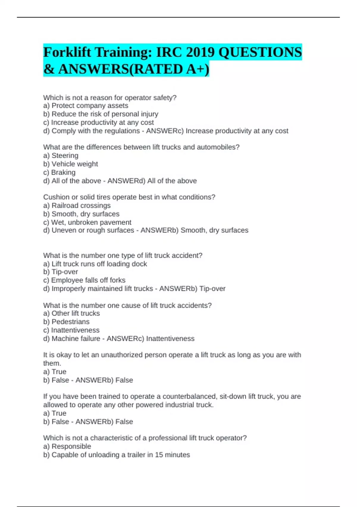 d) Improperly maintained lift trucks - ANSWERb) Tip-over