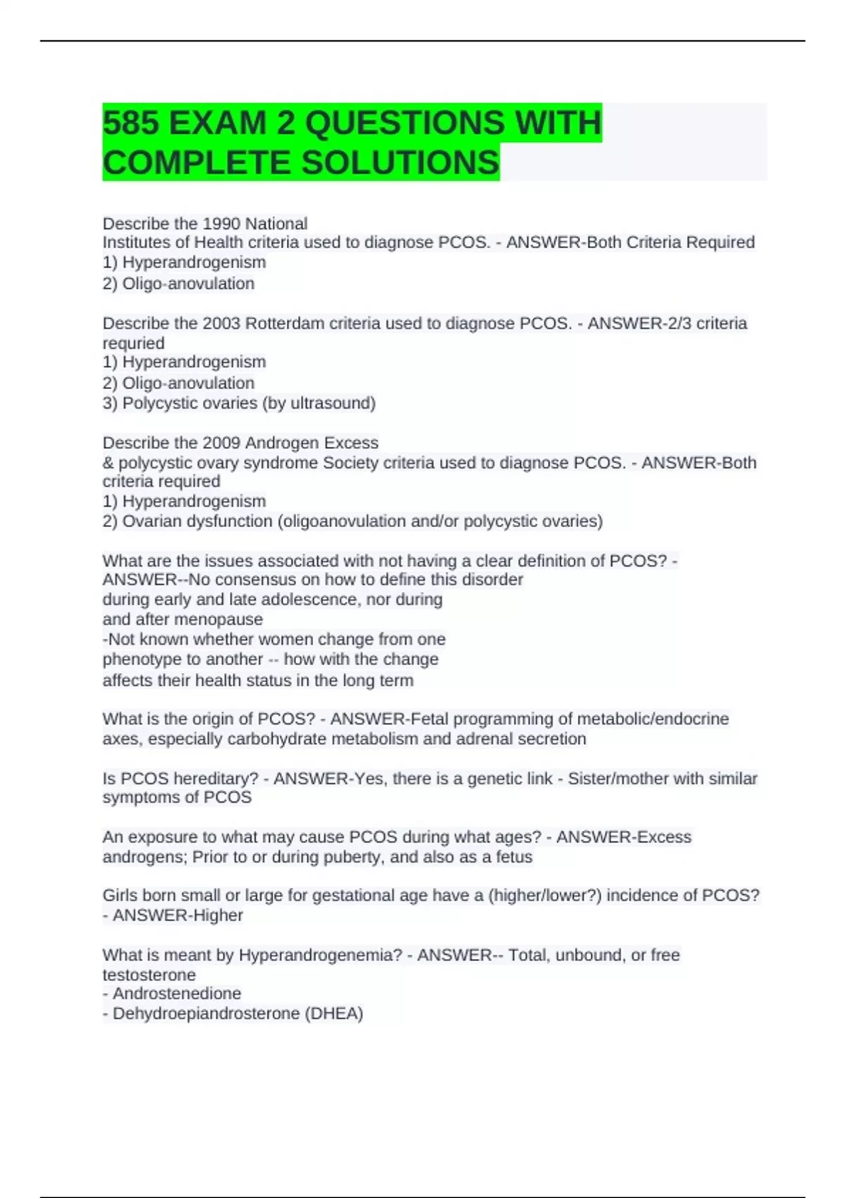 Is PCOS hereditary? - ANSWER-Yes, there is a genetic link - Sister/mother with similar