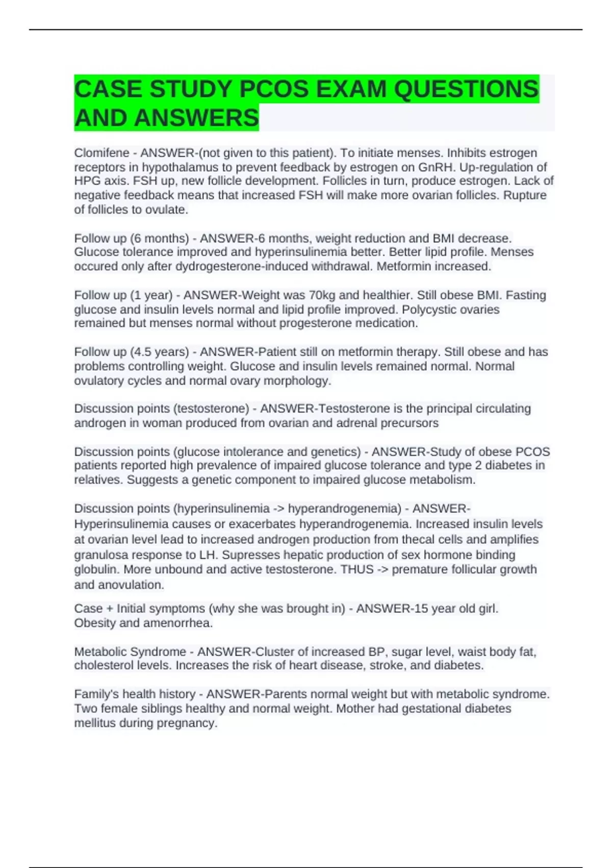 CASE STUDY PCOS EXAM QUESTIONS AND ANSWERS