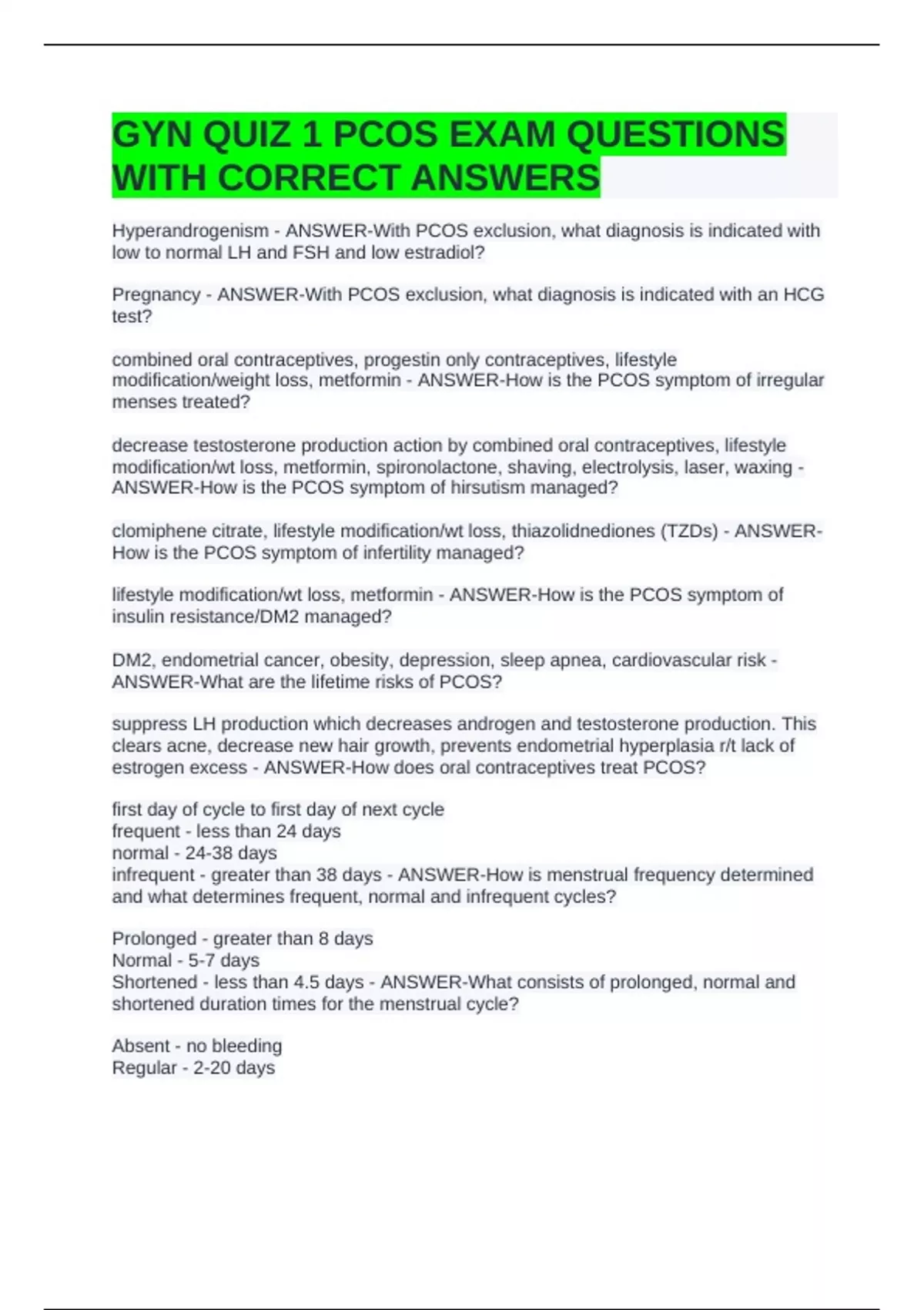 GYN QUIZ 1 PCOS EXAM QUESTIONS WITH CORRECT ANSWERS
