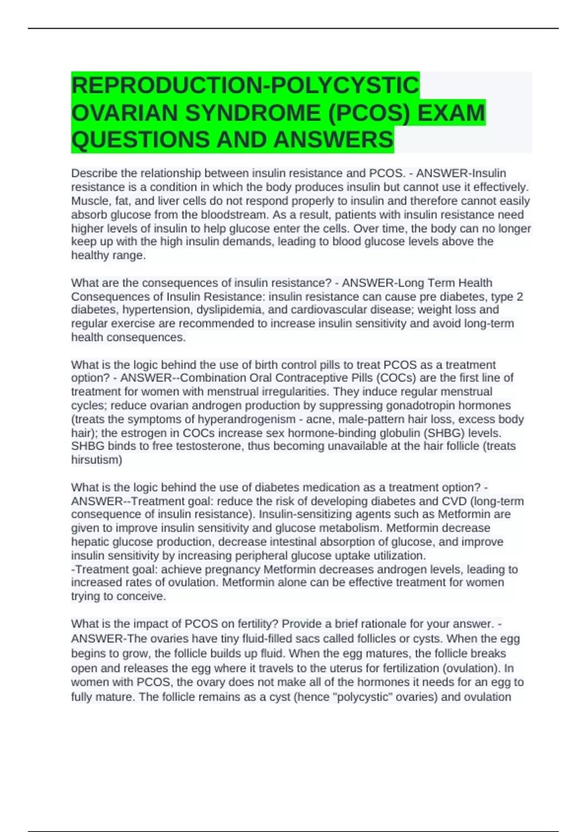 Describe the relationship between insulin resistance and PCOS. - ANSWER-Insulin