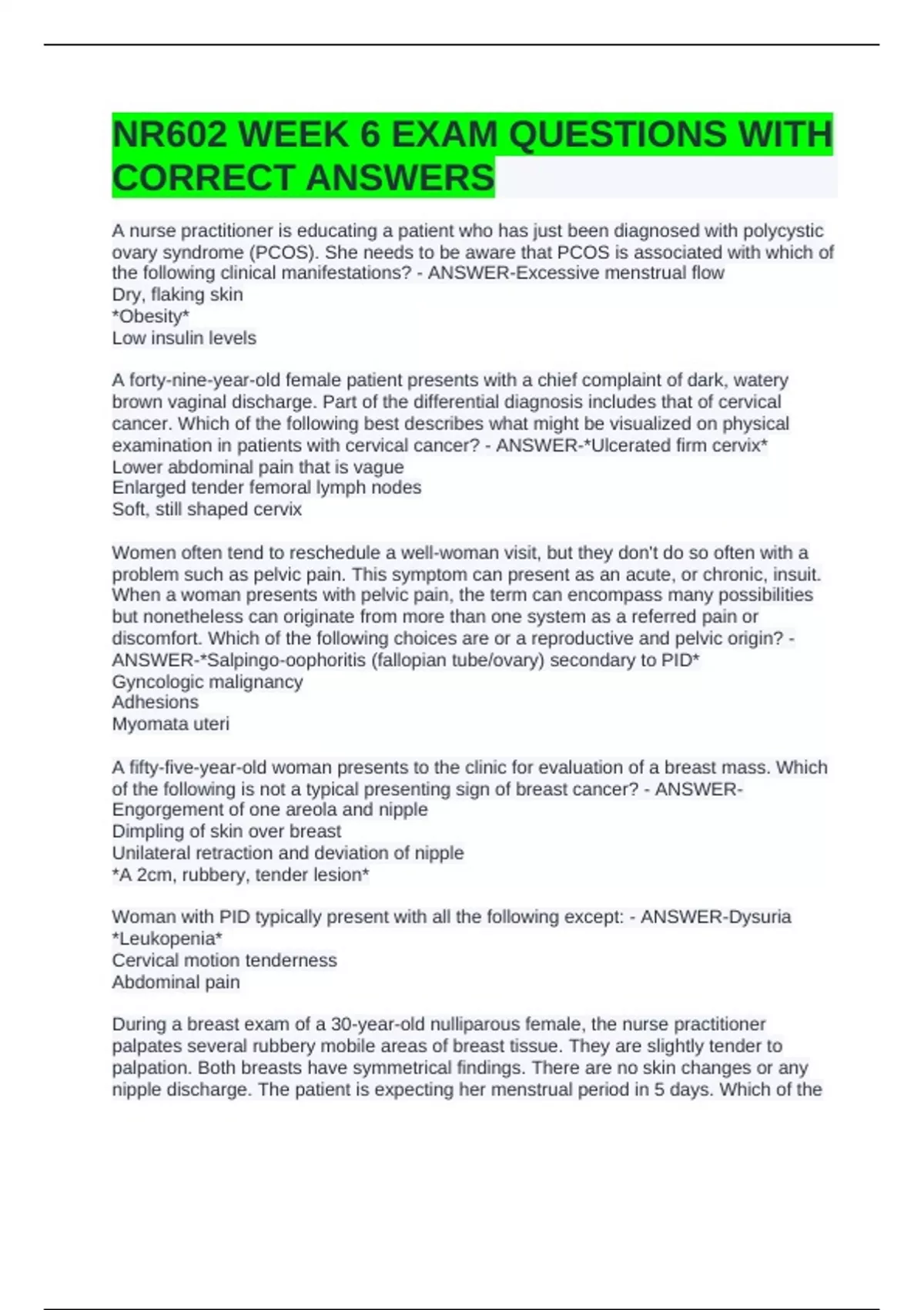 NR602 WEEK 6 EXAM QUESTIONS WITH CORRECT ANSWERS