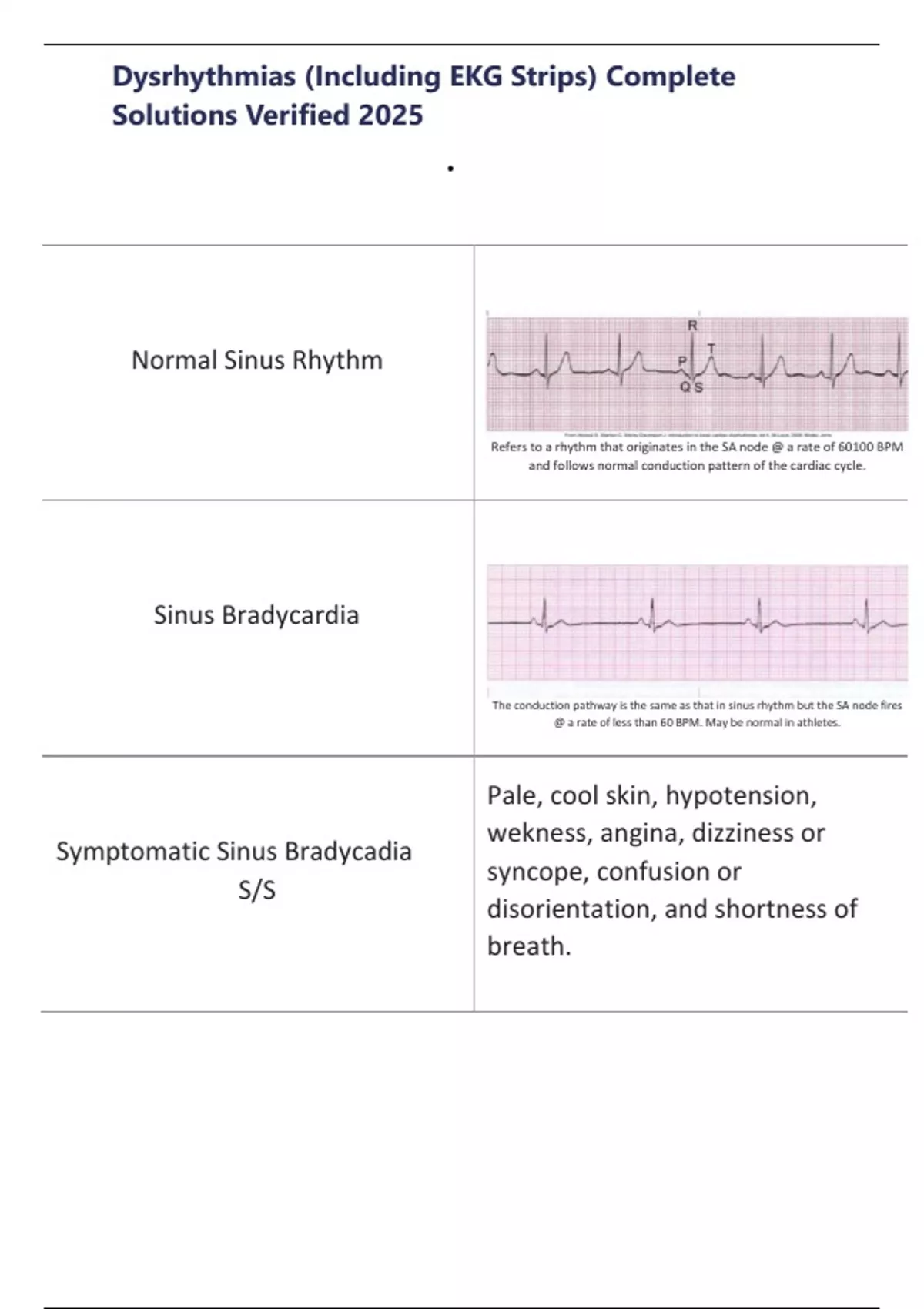 Dysrhythmias (Including EKG Strips) Complete Solutions Verified 2025/Dysrhythmias (Including EKG Strips) Complete Solutions Verified 2025/Dysrhythmias (Including EKG Strips) Complete Solutions Verified 2025