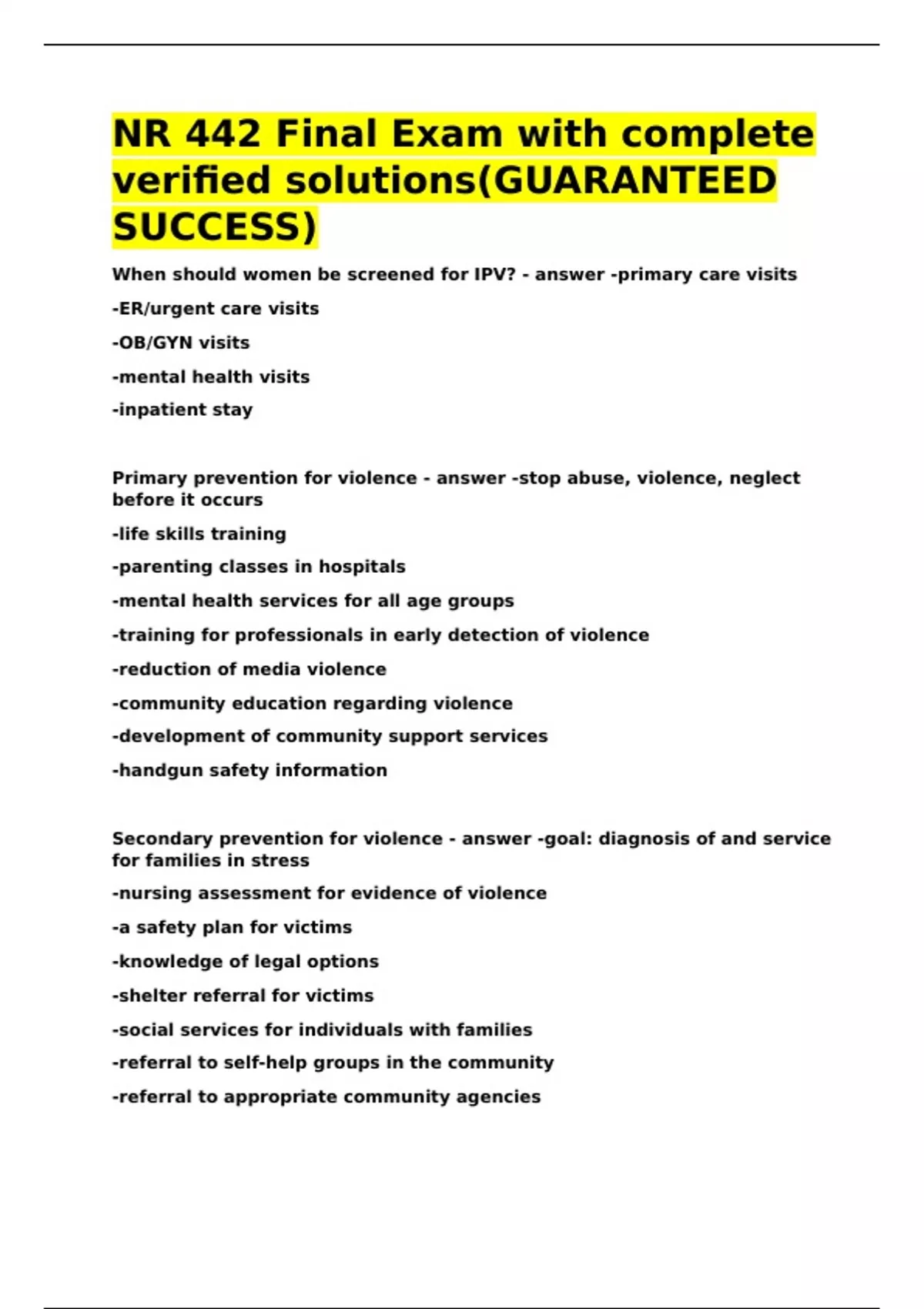 Primary prevention for violence - answer -stop abuse, violence, neglect