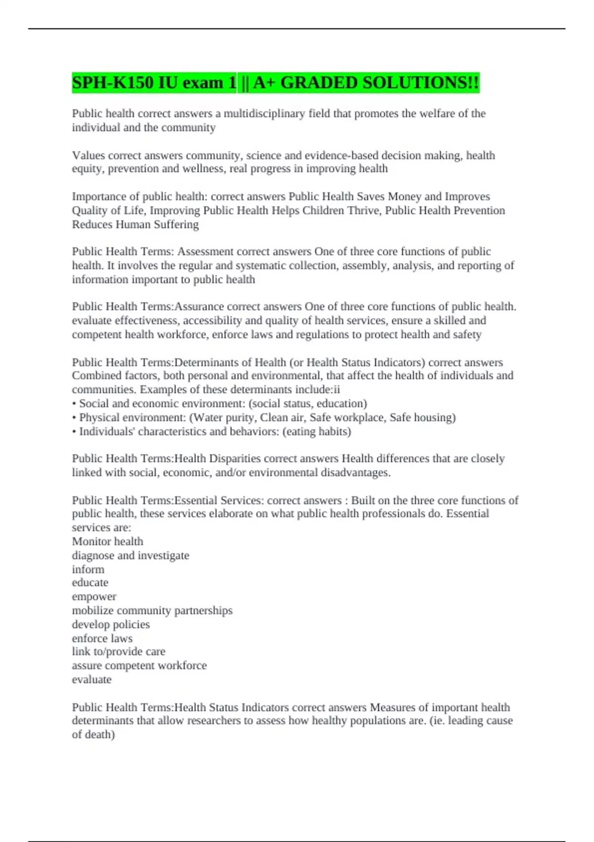 Public Health Terms:Essential Services: correct answers : Built on the three core functions of