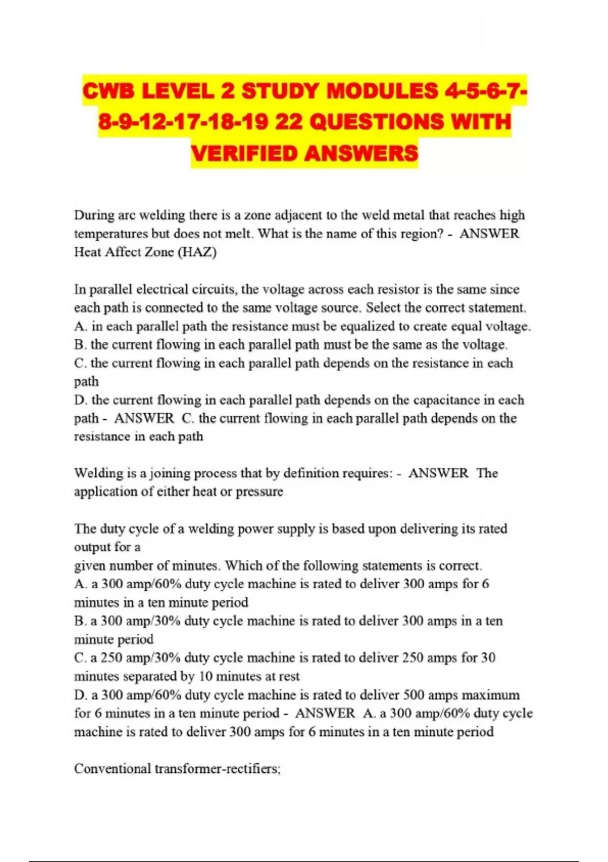 CWB LEVEL 2 STUDY MODULES 4-5-6-7-8- 22 QUESTIONS WITH VERIFIED ANSWERS