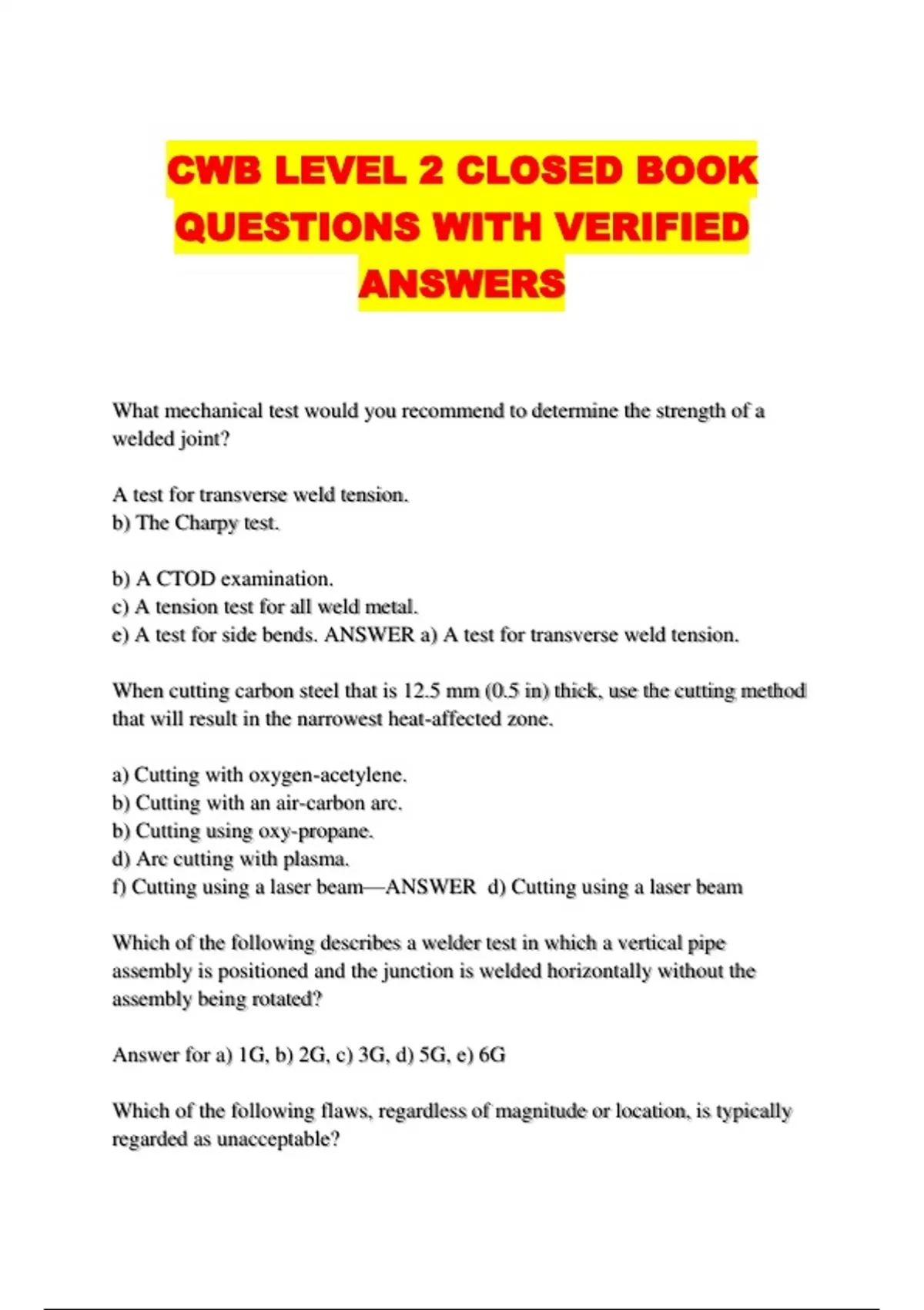 e) A test for side bends. ANSWER a) A test for transverse weld tension.