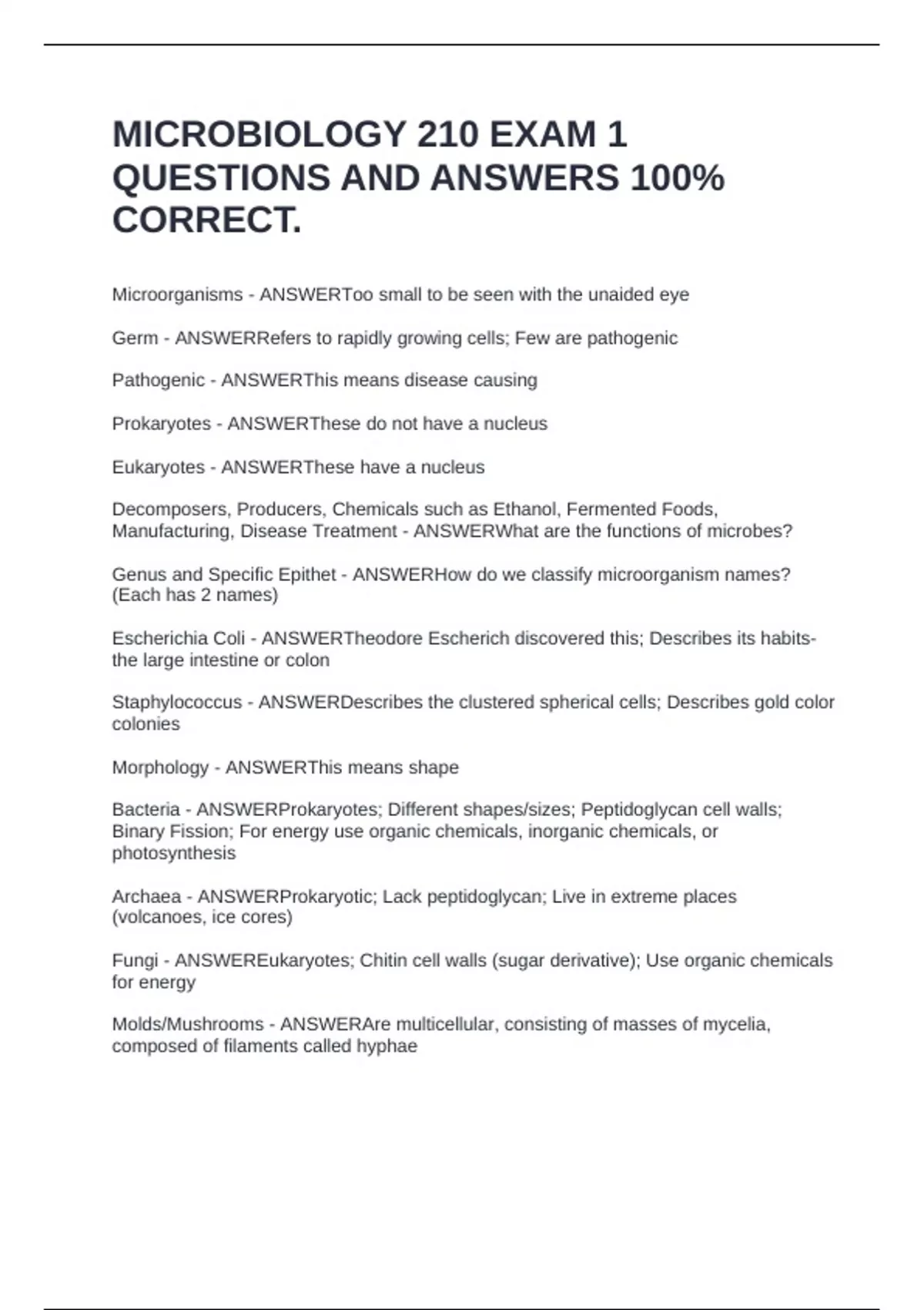 Bacteria - ANSWERProkaryotes; Different shapes/sizes; Peptidoglycan cell walls;