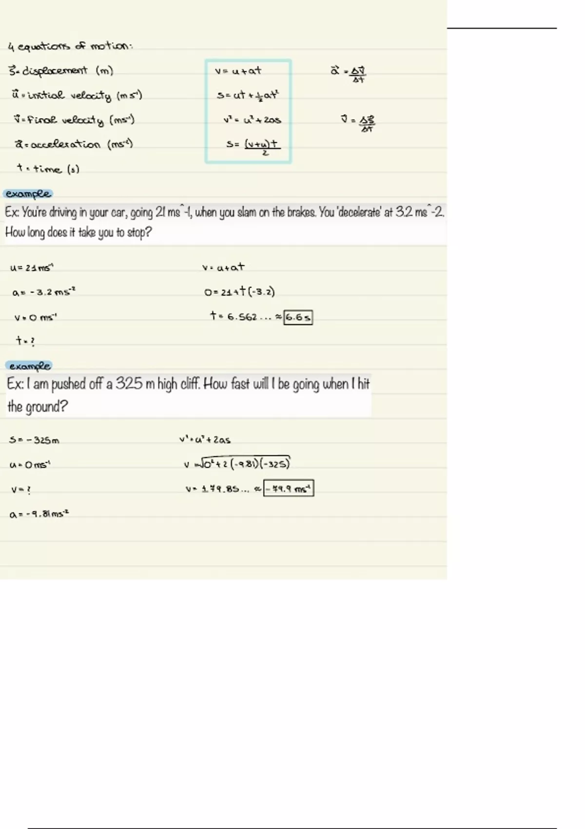 = acceleration (ms) S = (v + u) +