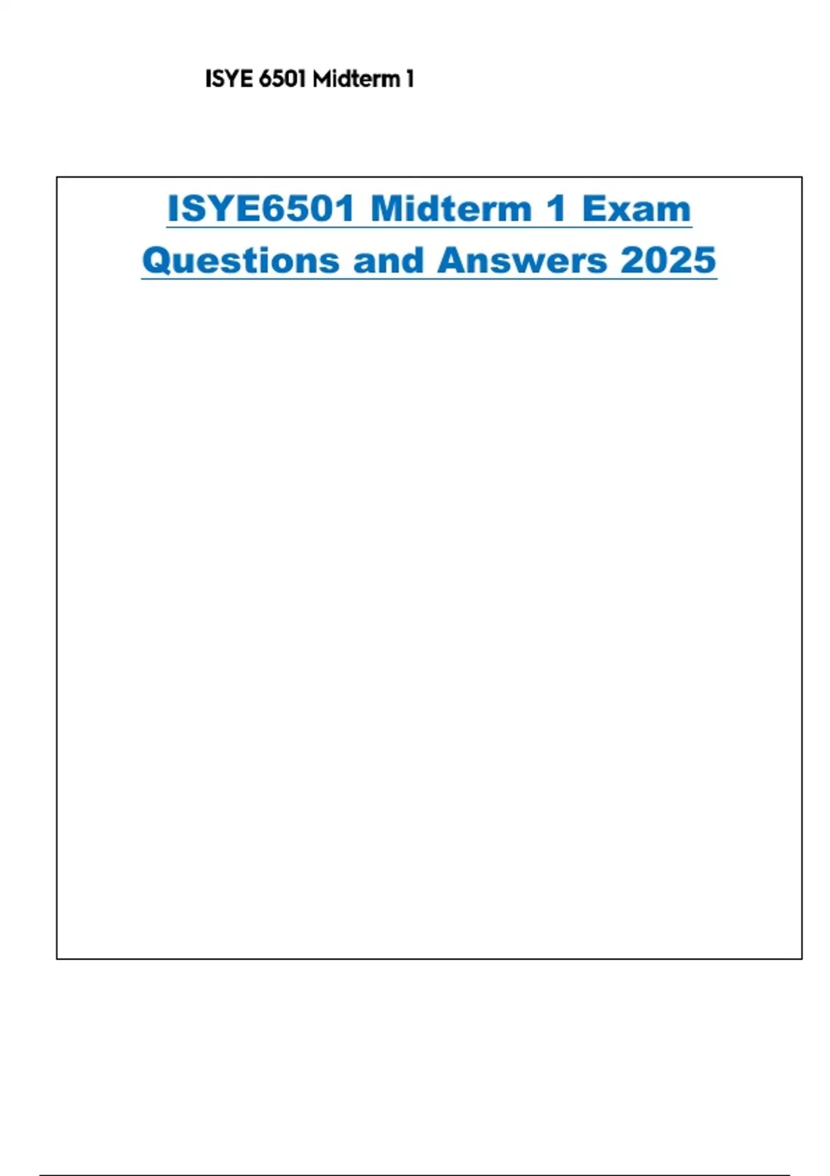 ISYE6501 Midterm 1 Exam Questions and Answers 2025
