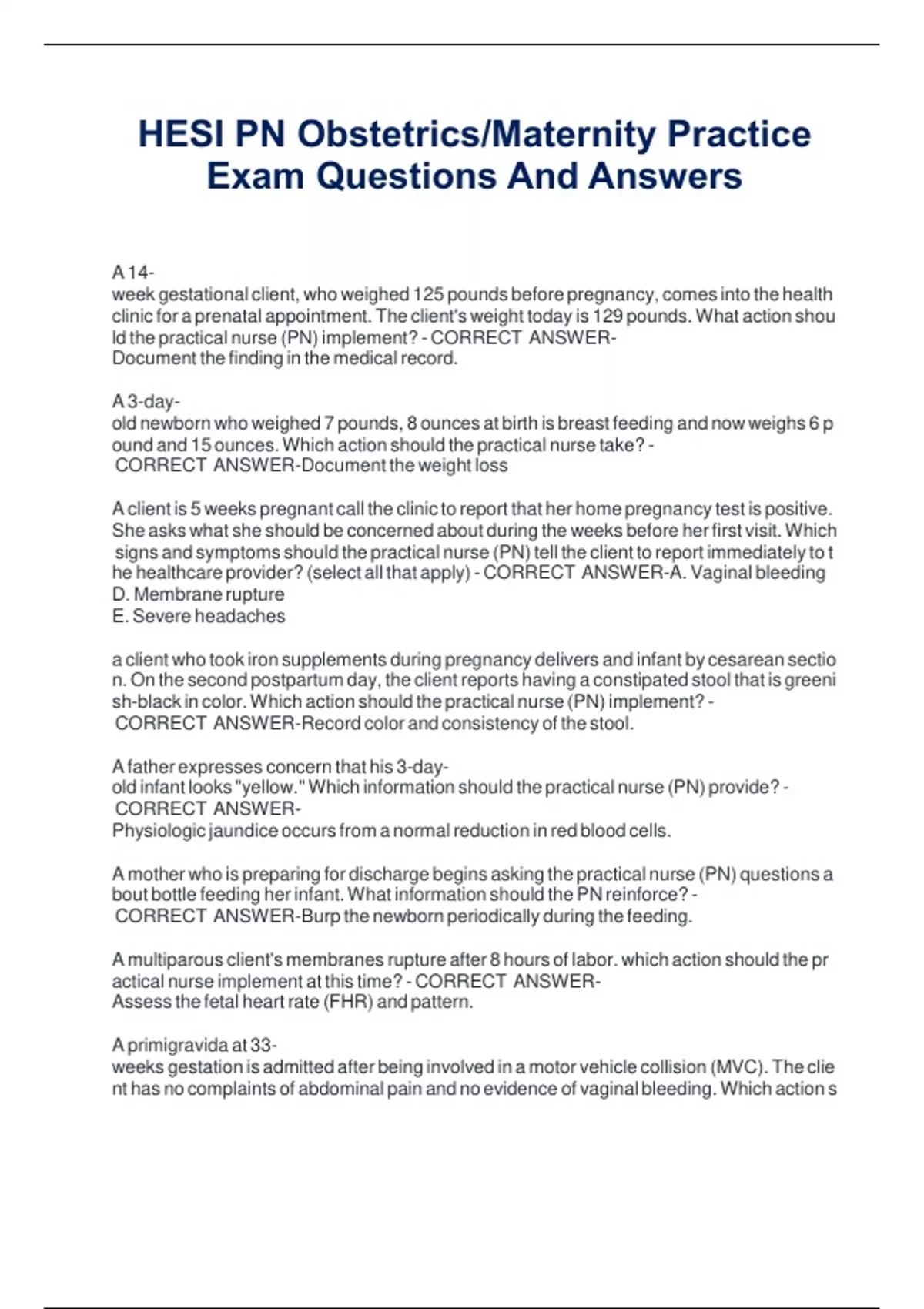 HESI PN Obstetrics/Maternity Practice Exam Questions And Answers HESI PN Obstetrics/Maternity Practice Exam Questions And Answers HESI PN Obstetrics/Maternity Practice Exam Questions And Answers