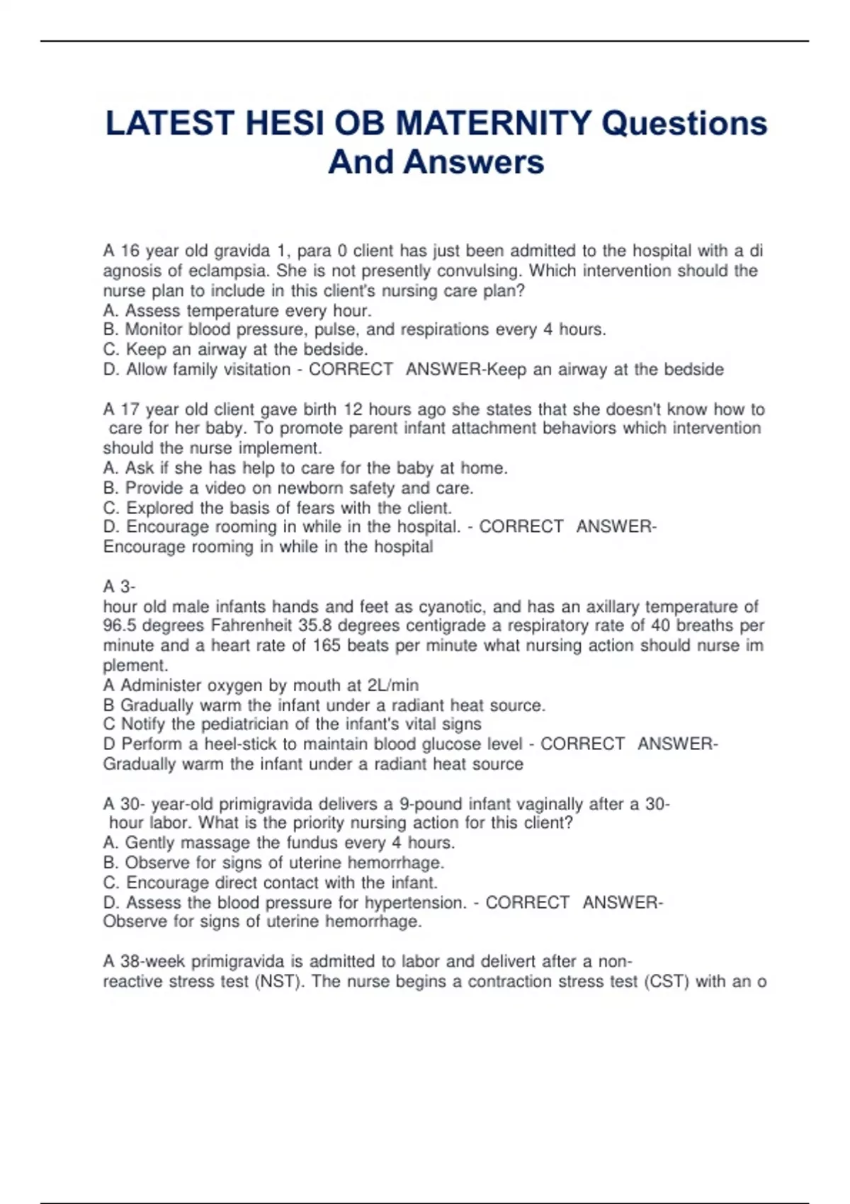LATEST HESI OB MATERNITY Questions And Answers LATEST HESI OB MATERNITY Questions And Answers LATEST HESI OB MATERNITY Questions And Answers