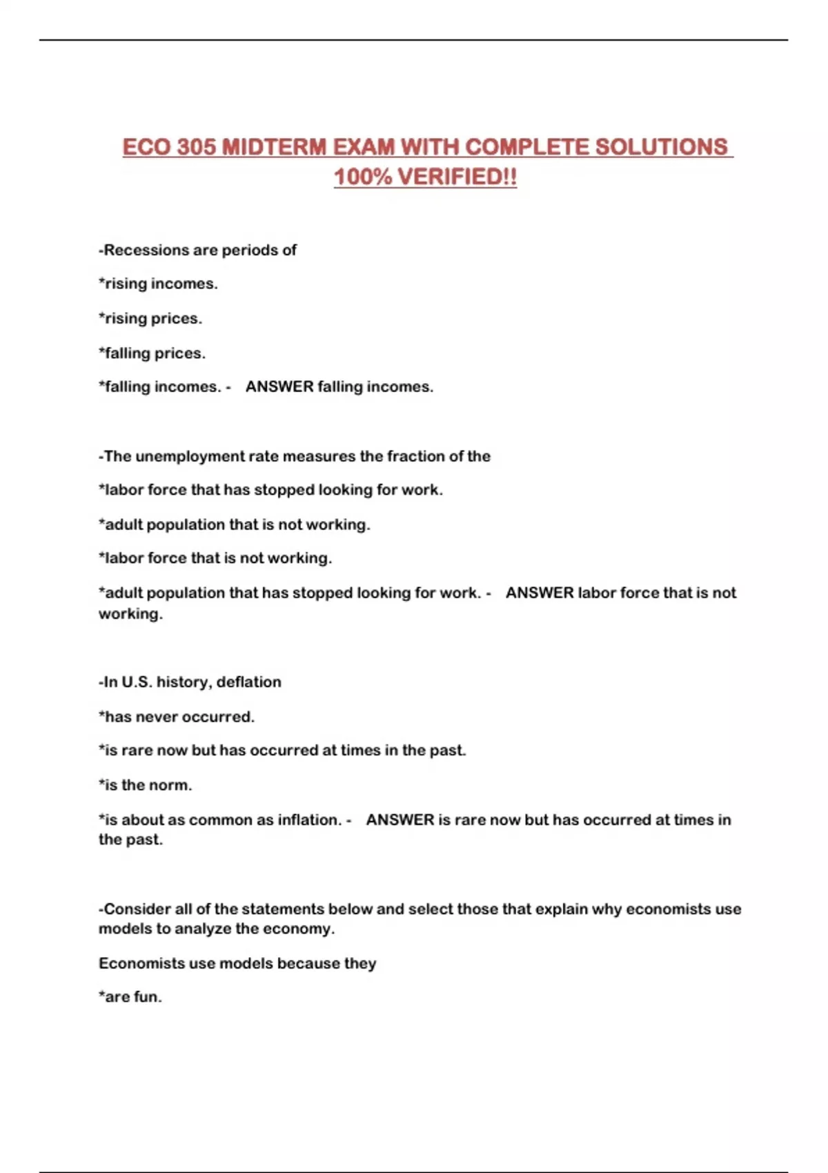 ECO 305 MIDTERM EXAM WITH COMPLETE SOLUTIONS