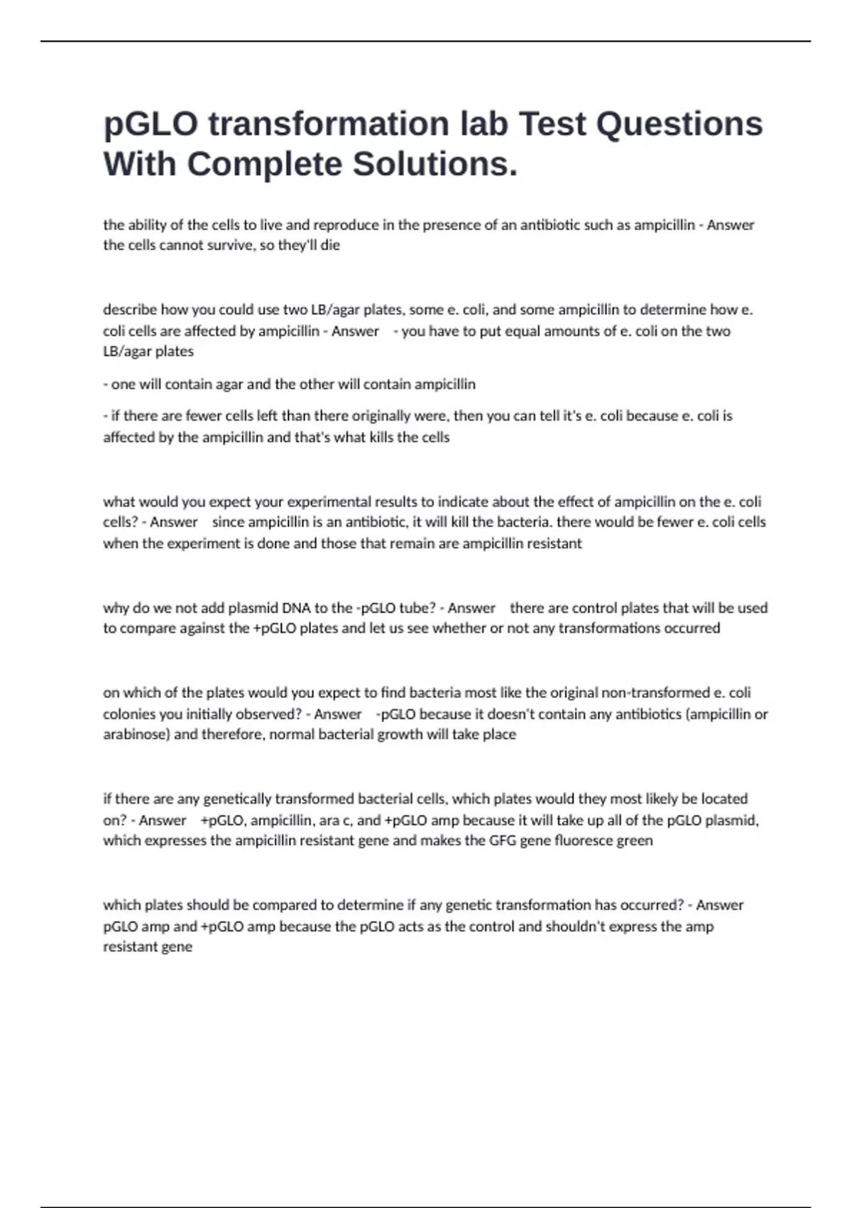 on? - Answer +pGLO, ampicillin, ara c, and +pGLO amp because it will take up all of the pGLO plasmid,
