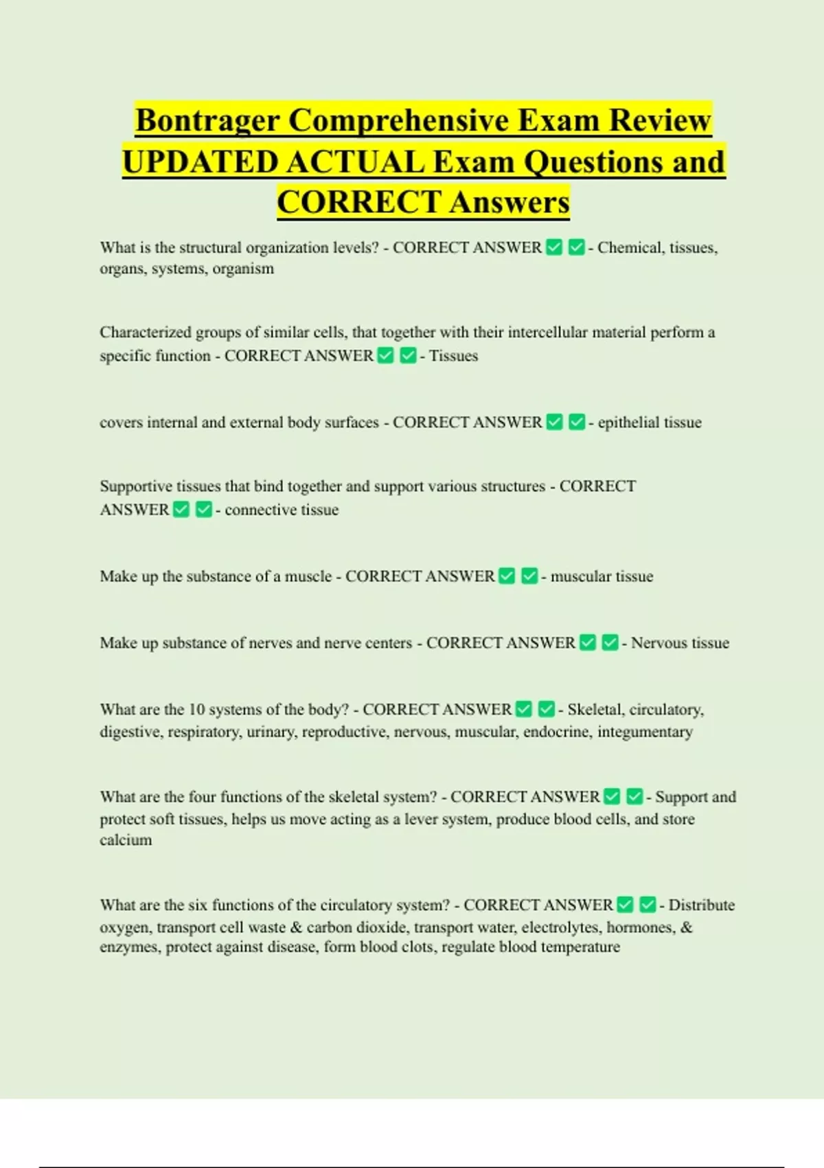 What are the 10 systems of the body? - CORRECT ANSWER - Skeletal, circulatory,