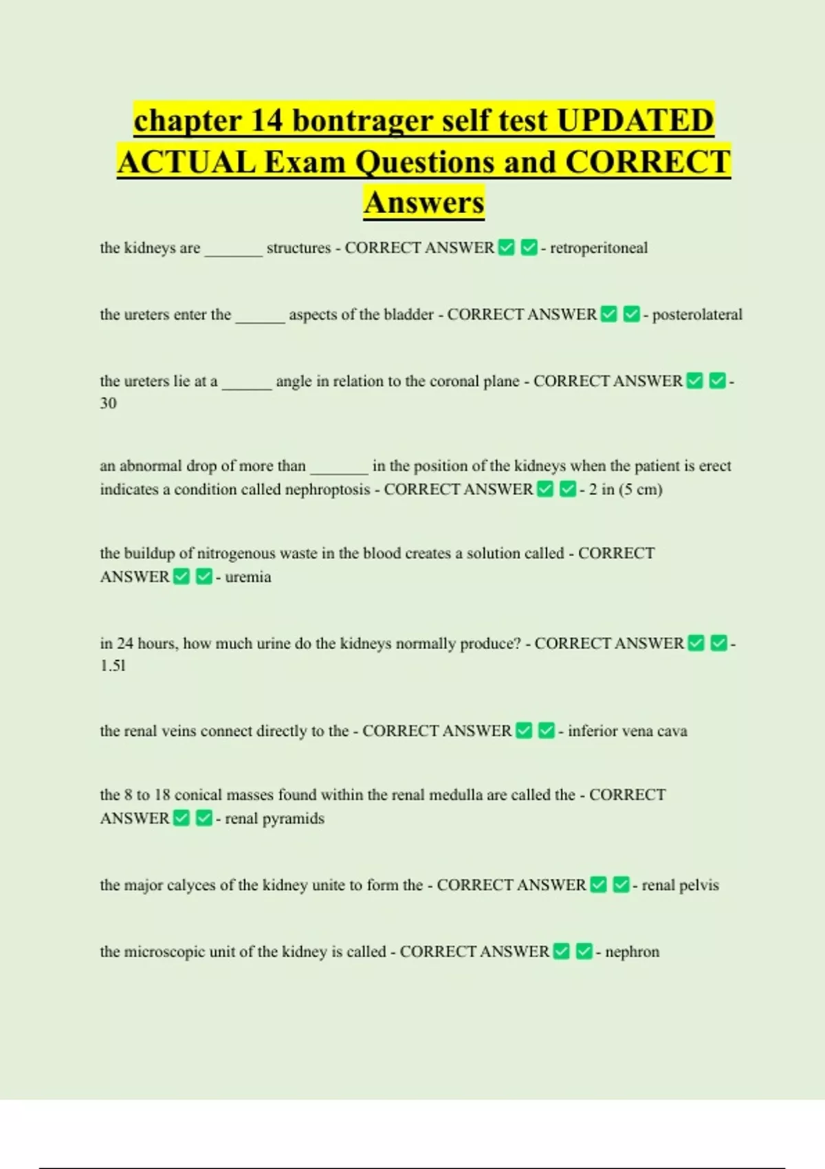the major calyces of the kidney unite to form the - CORRECT ANSWER - renal pelvis