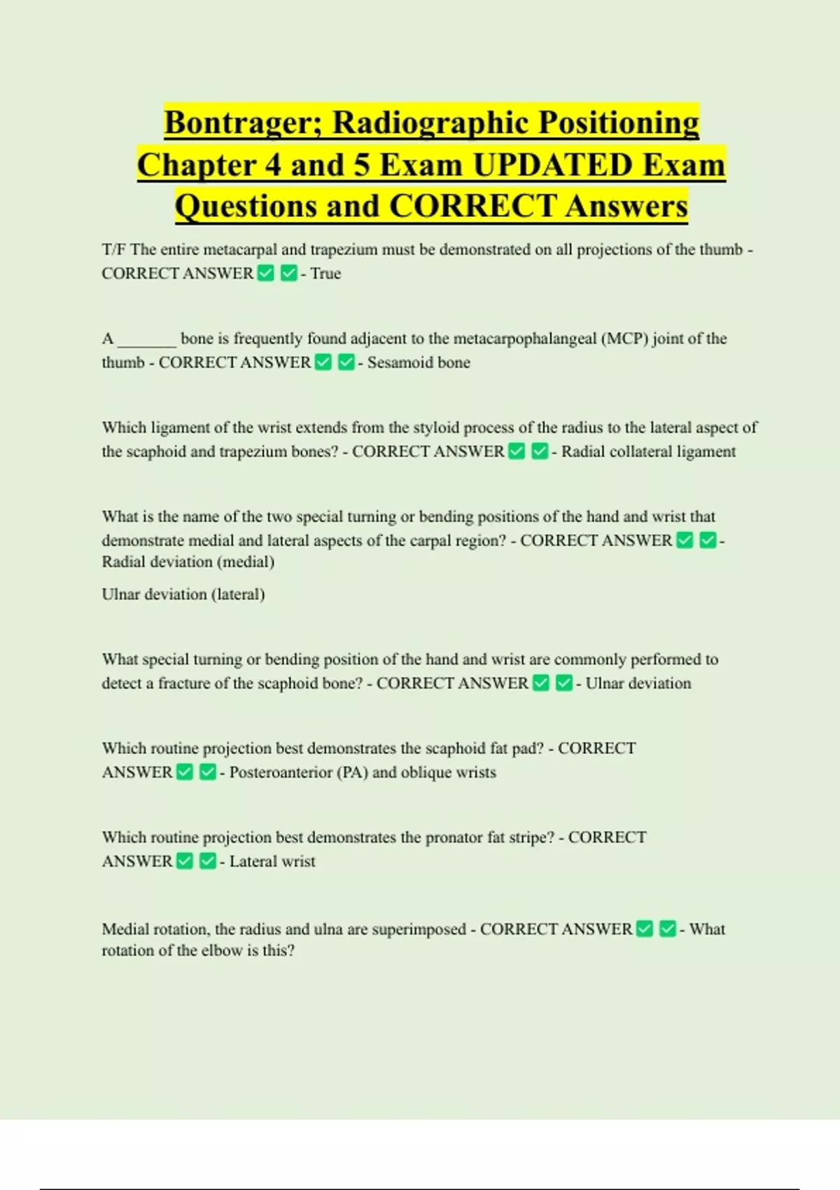 correctly exposed anteroposterior (AP) elbow projections? - CORRECT ANSWER - False,