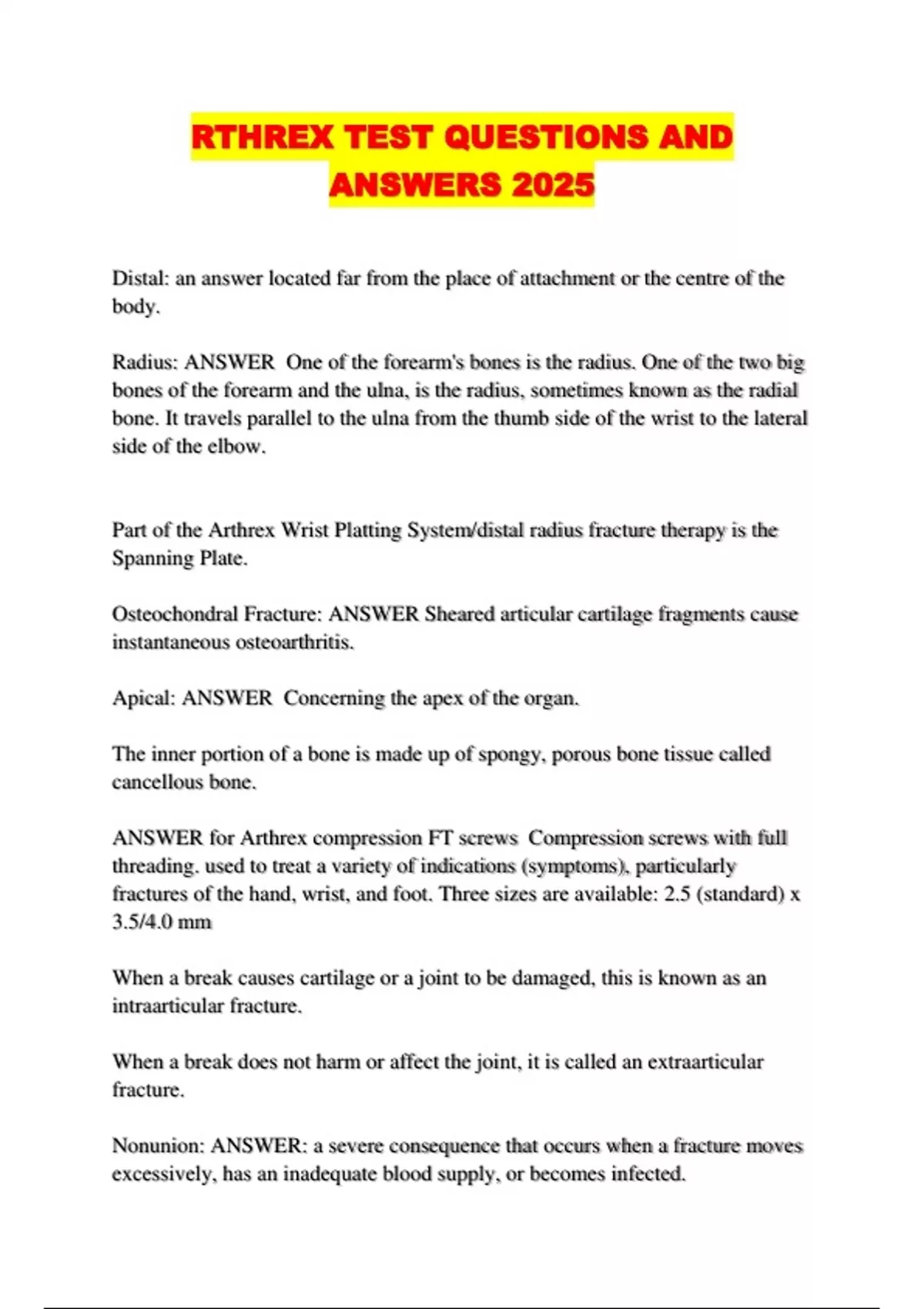 RTHREX TEST QUESTIONS AND