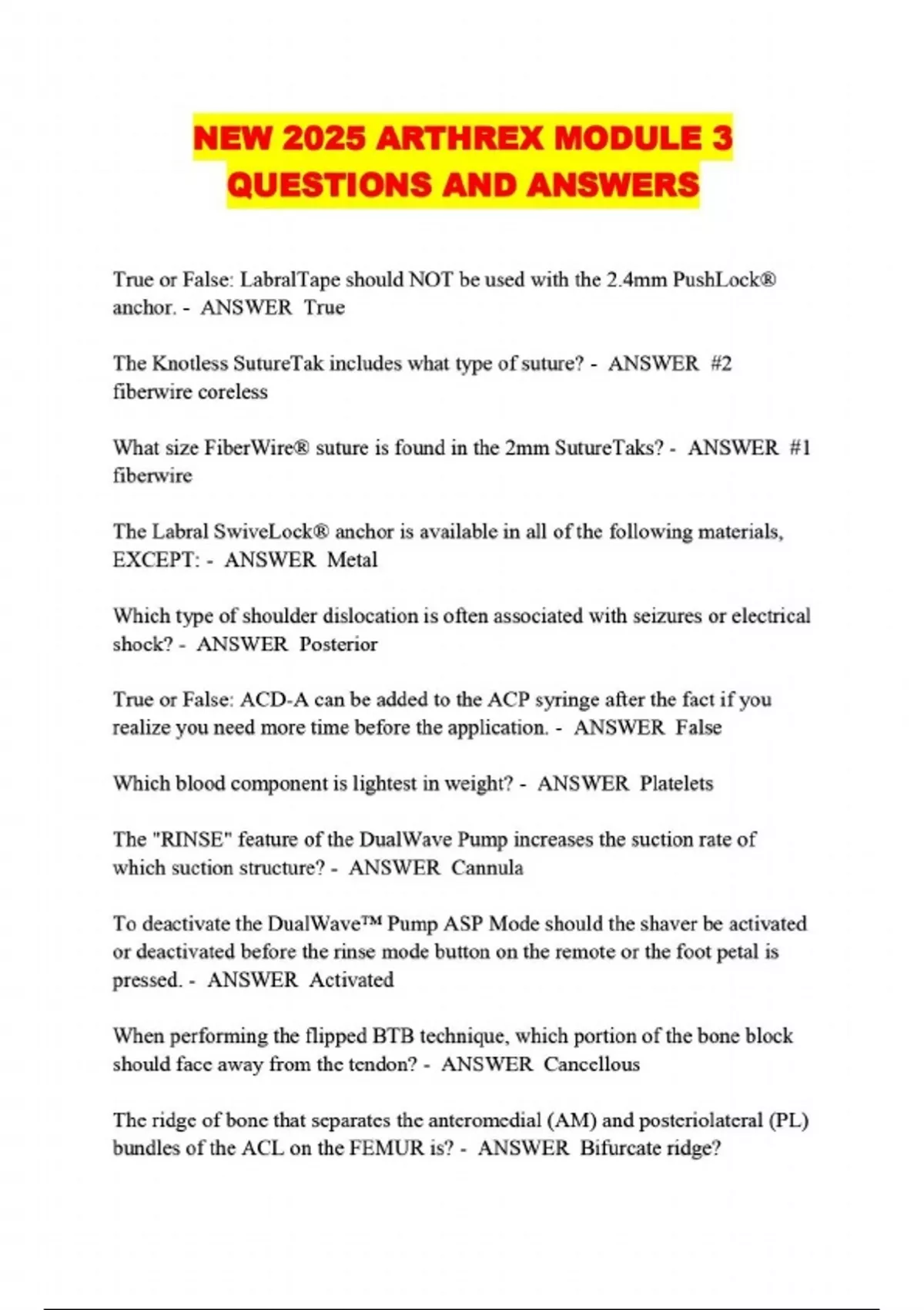 NEW 2025 ARTHREX MODULE 3 QUESTIONS AND ANSWERS...