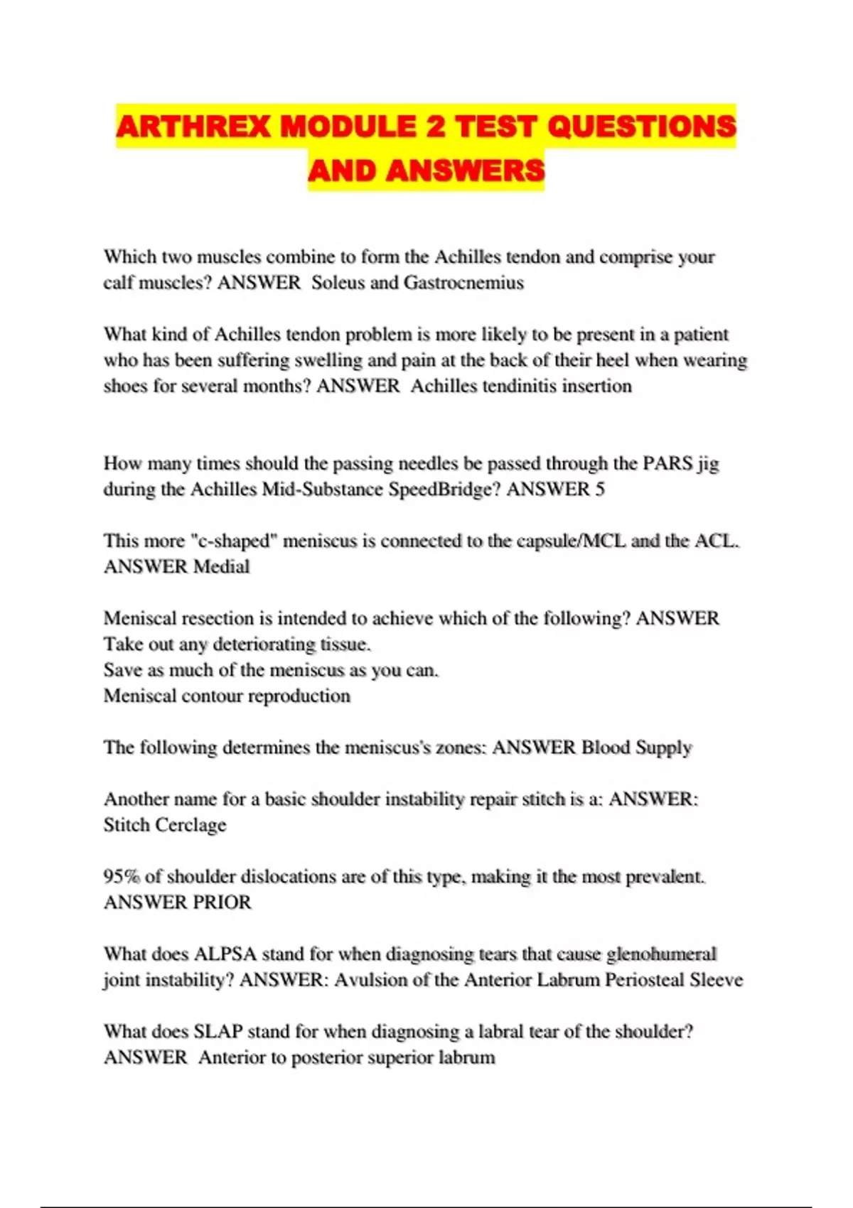 ARTHREX MODULE 2 TEST QUESTIONS
