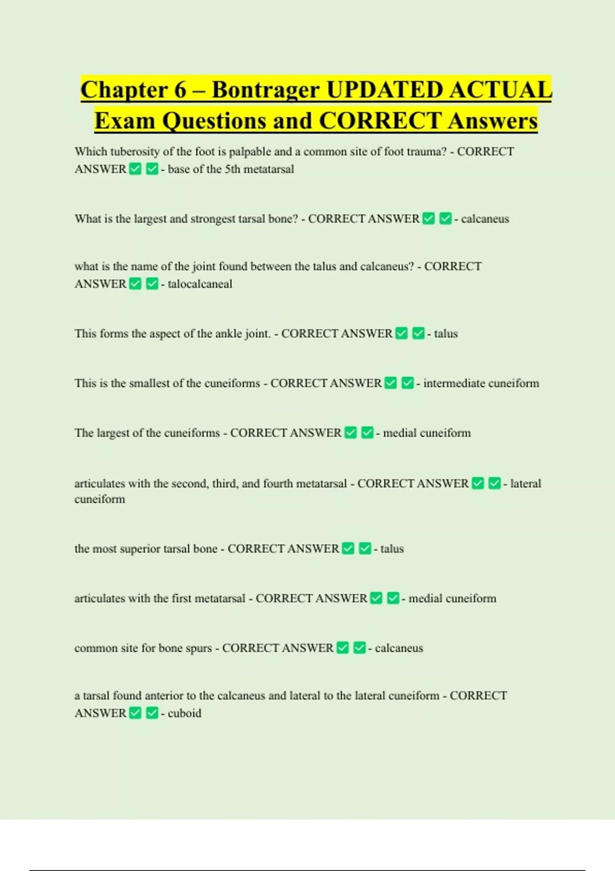 the calcaneus articulates with the talus and the _____ - CORRECT ANSWER - cuboid
