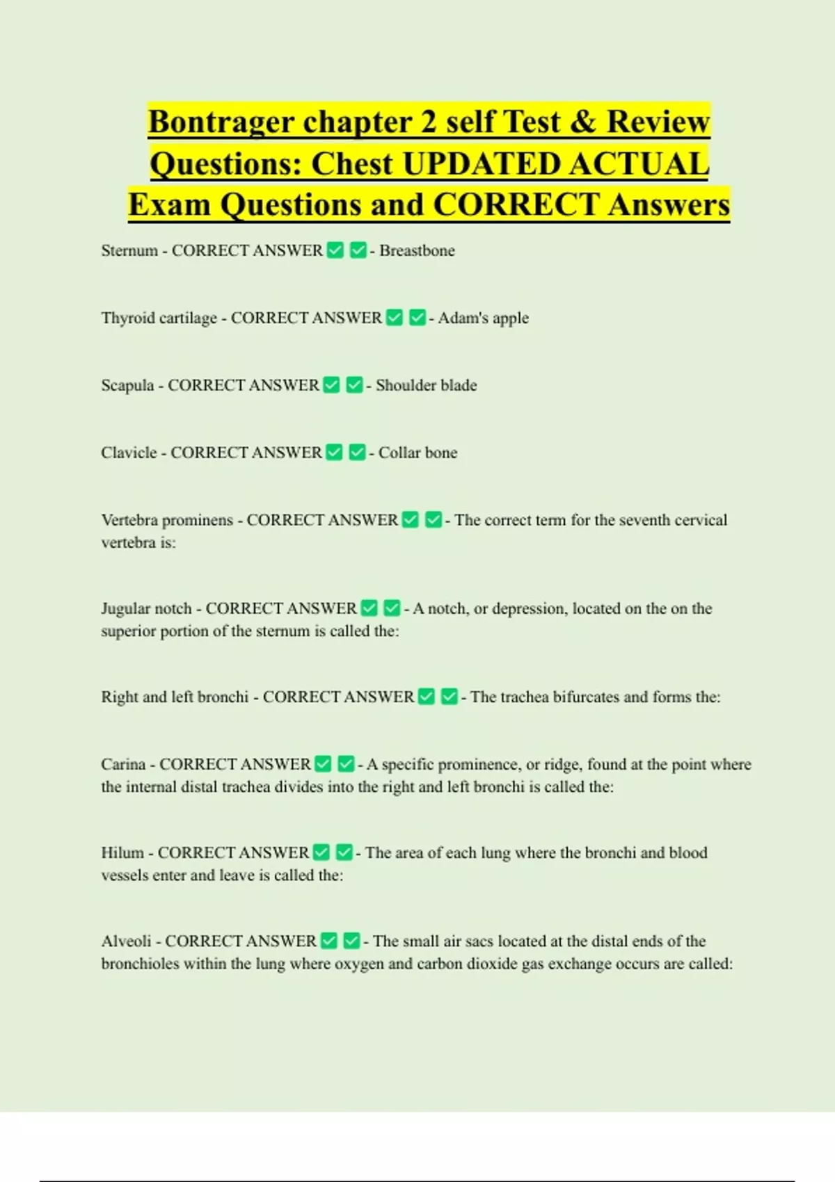 Right and left bronchi - CORRECT ANSWER - The trachea bifurcates and forms the: