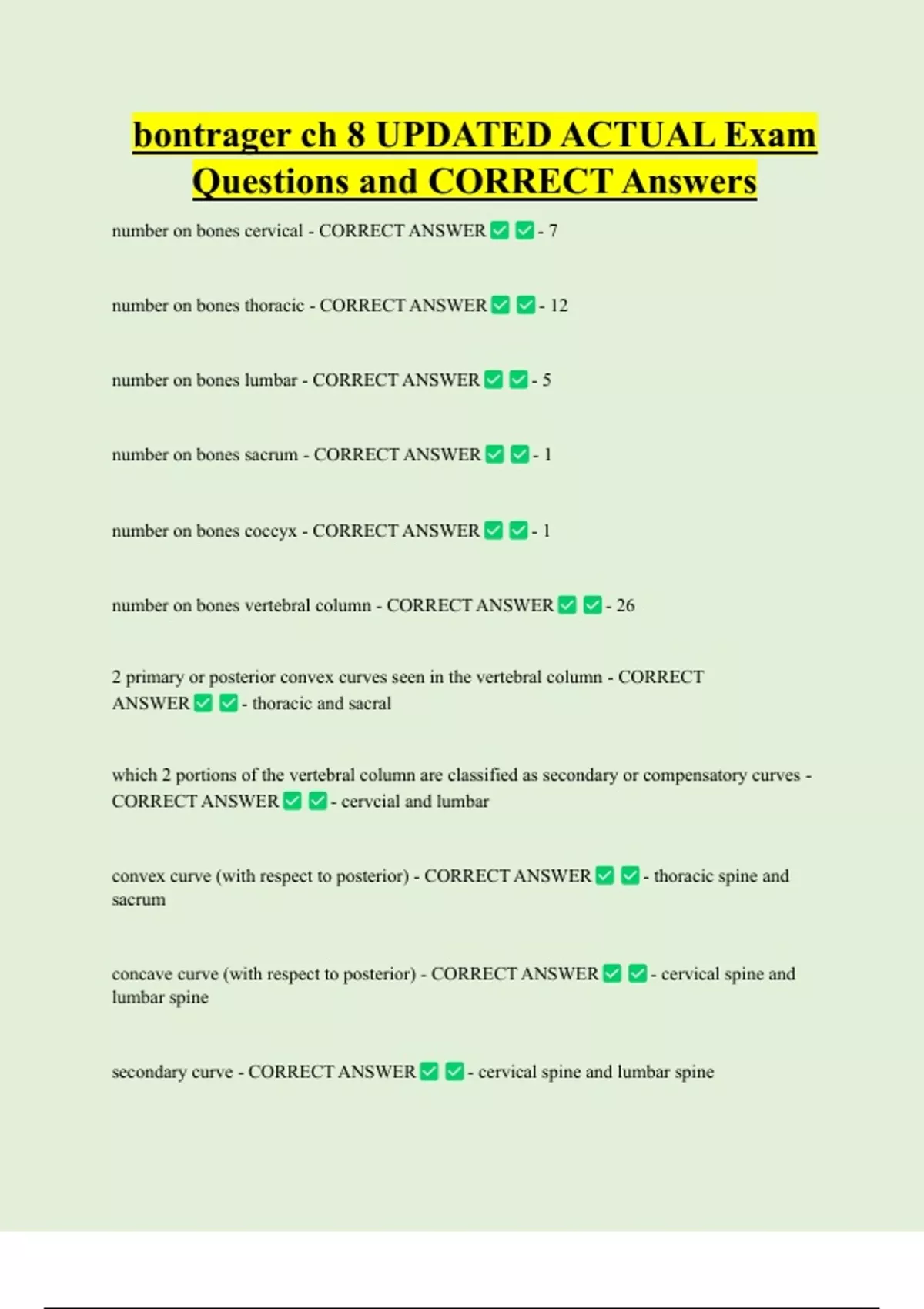 number on bones lumbar - CORRECT ANSWER -5