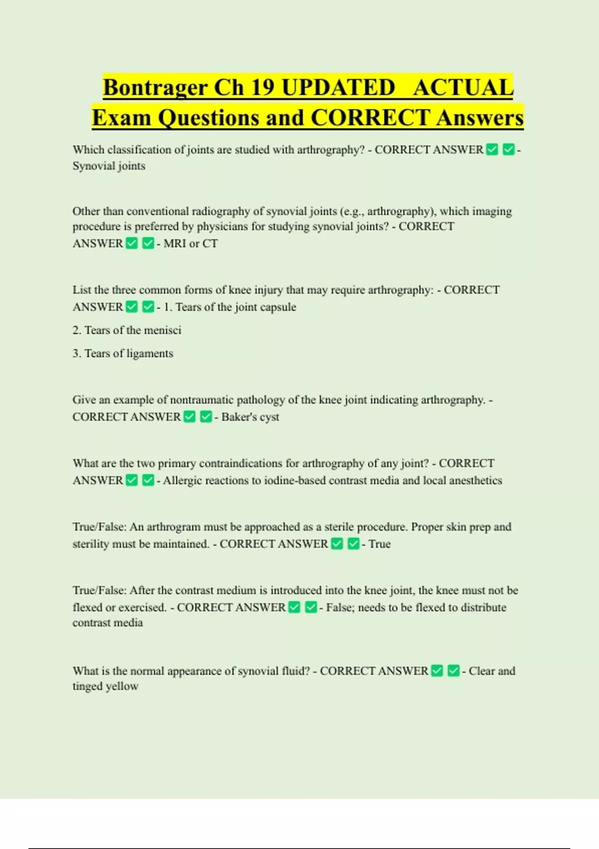 procedure is preferred by physicians for studying synovial joints? - CORRECT