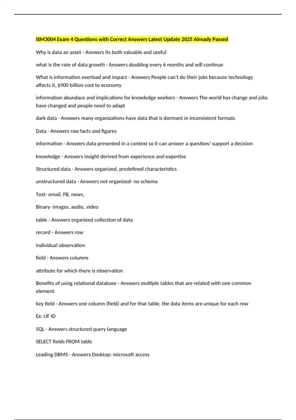 SQL - Answers structured query language