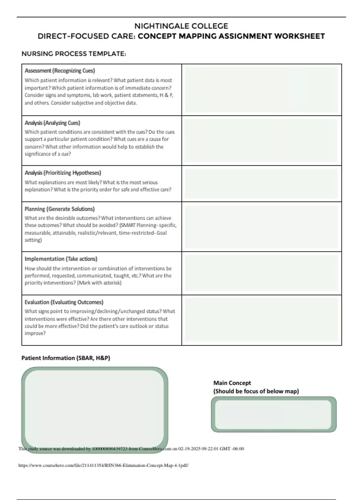 DIRECT-FOCUSED CARE: CONCEPT MAPPING ASSIGNMENT WORKSHEET