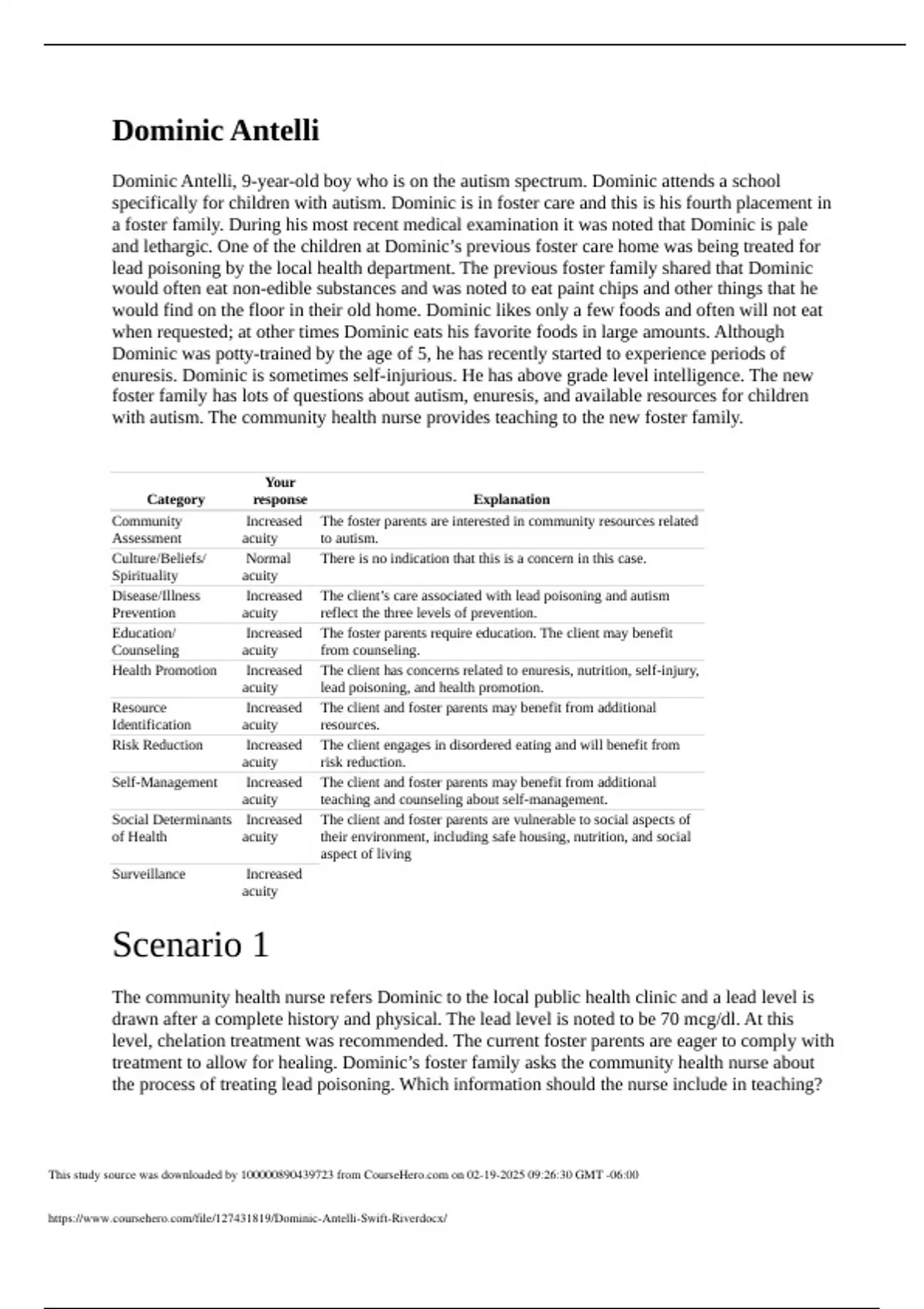 lead poisoning by the local health department. The previous foster family shared that Dominic