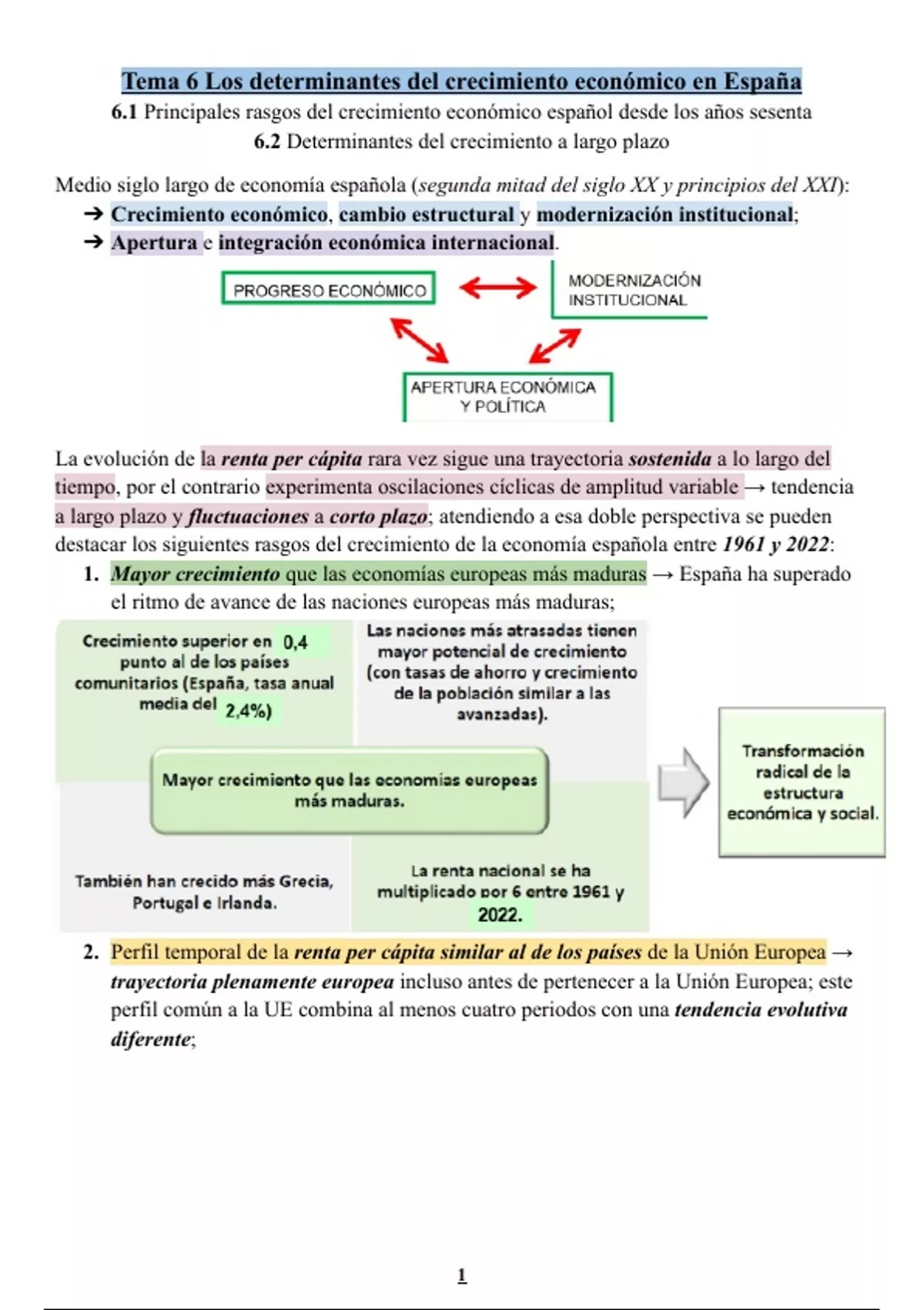 6.1 Principales rasgos del crecimiento económico español desde los años sesenta