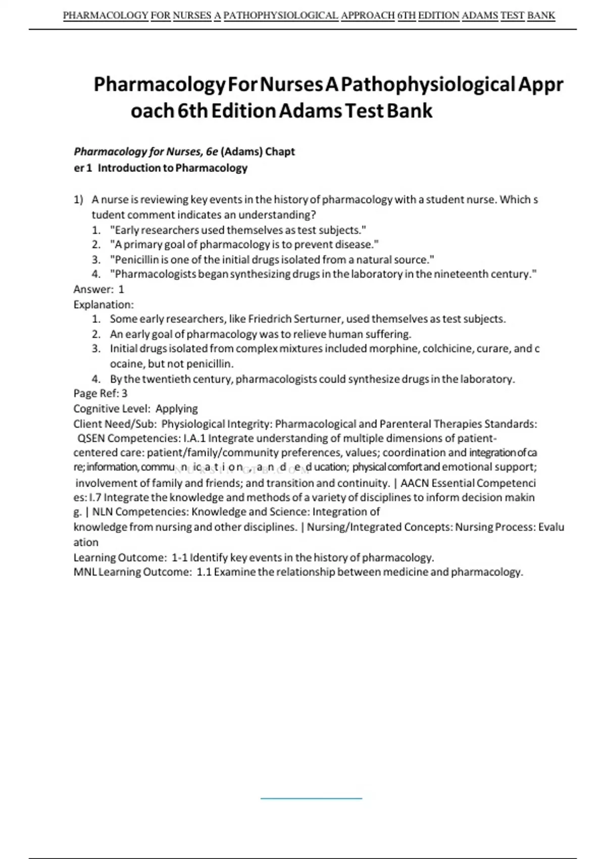 PHARMACOLOGYxFORxNURSESxAxPATHOPHYSIOLOGICALxAPPROACHx6THxEDITIONxADAMSxTESTxBANK