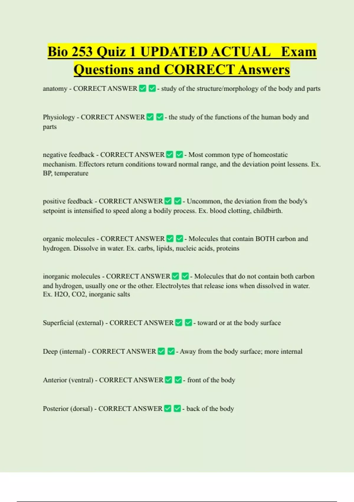 Bio 253 Quiz 1 UPDATED ACTUAL Exam Questions and CORRECT Answers
