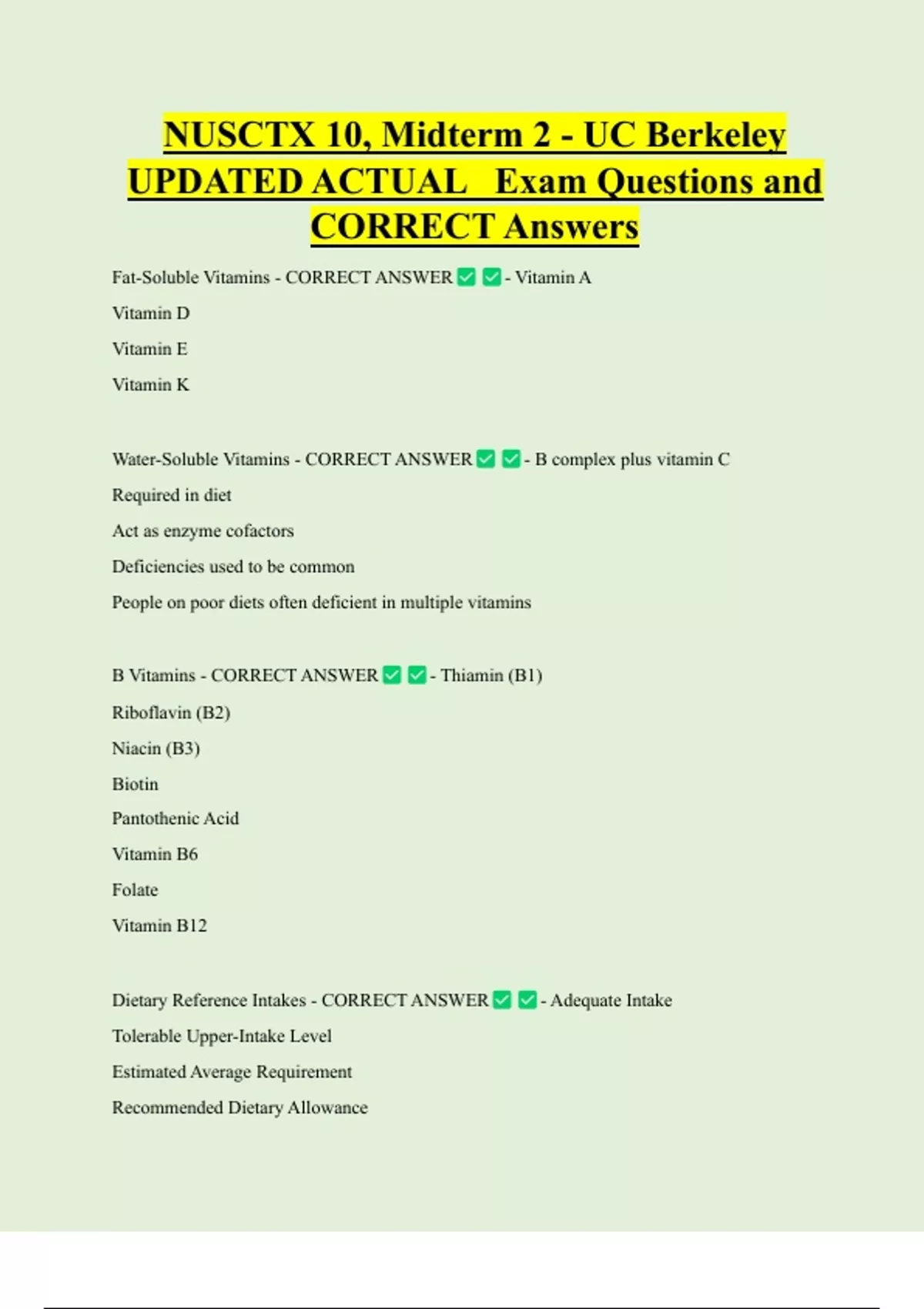 Water-Soluble Vitamins - CORRECT ANSWER - B complex plus vitamin C