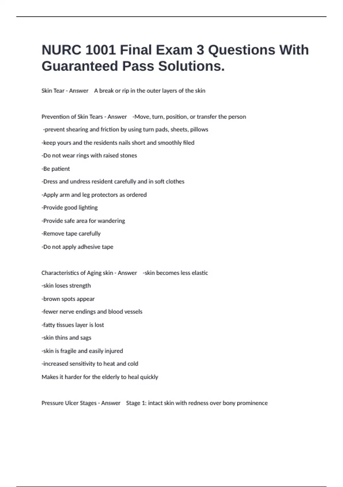 Skin Tear - Answer A break or rip in the outer layers of the skin