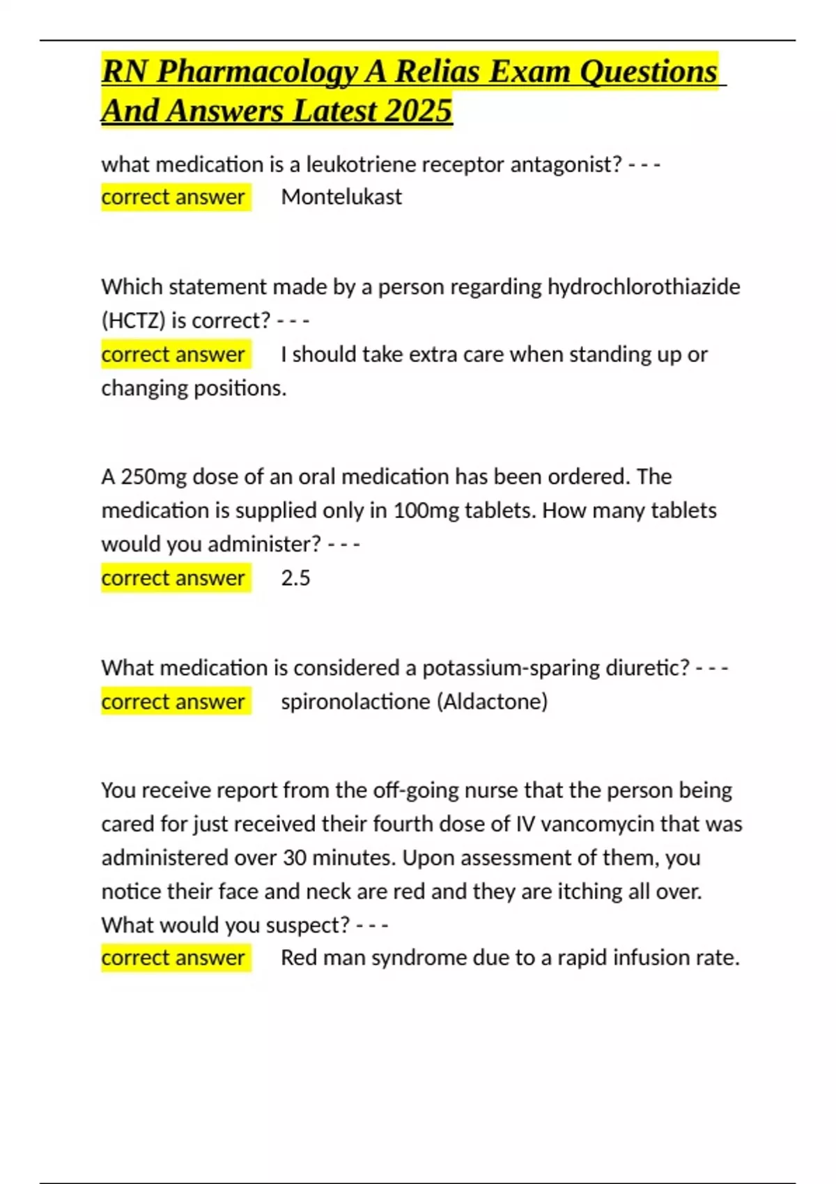 , RN Pharmacology A Relias Exam Questions