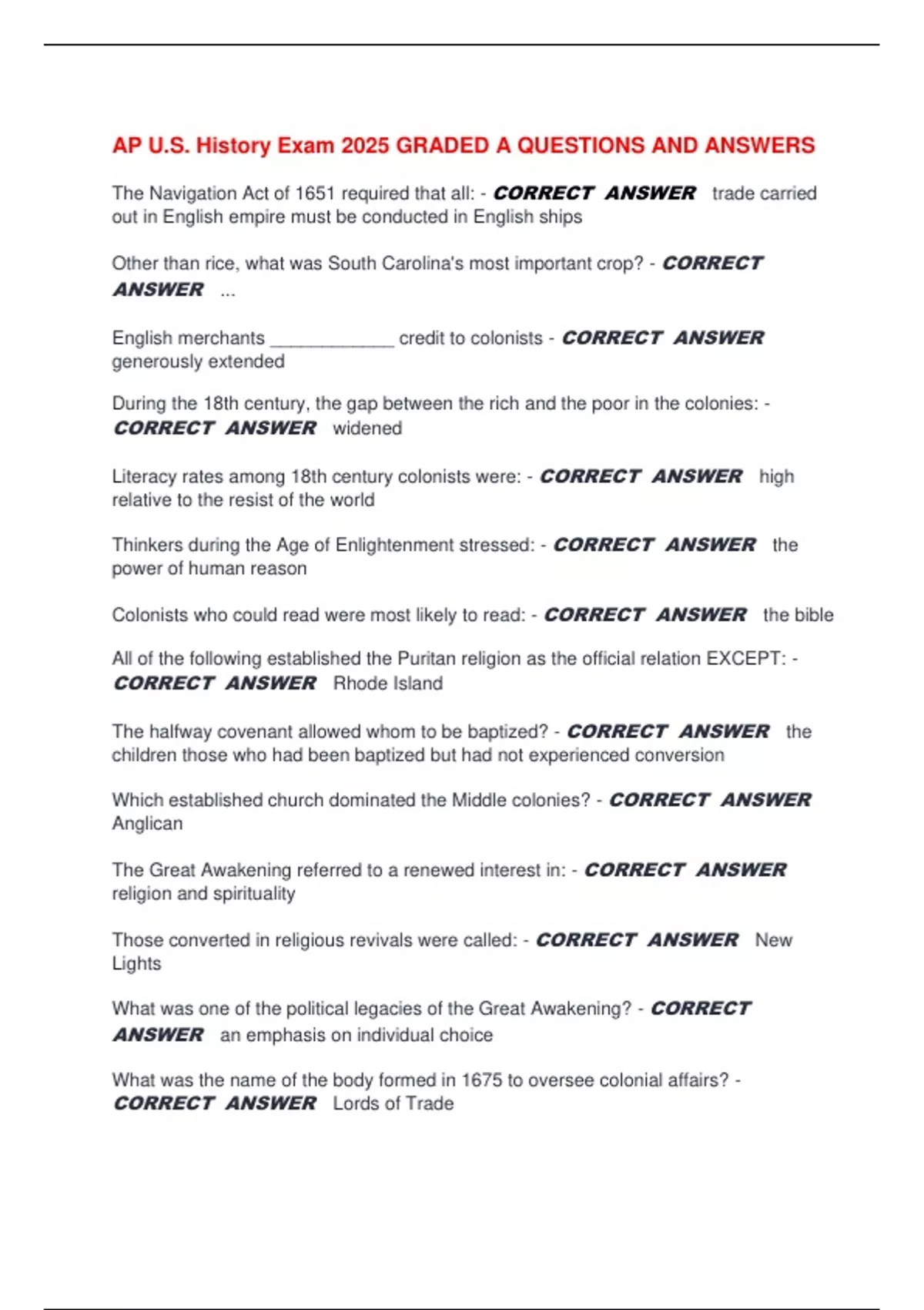 The Navigation Act of 1651 required that all: - CORRECT ANSWER trade carried