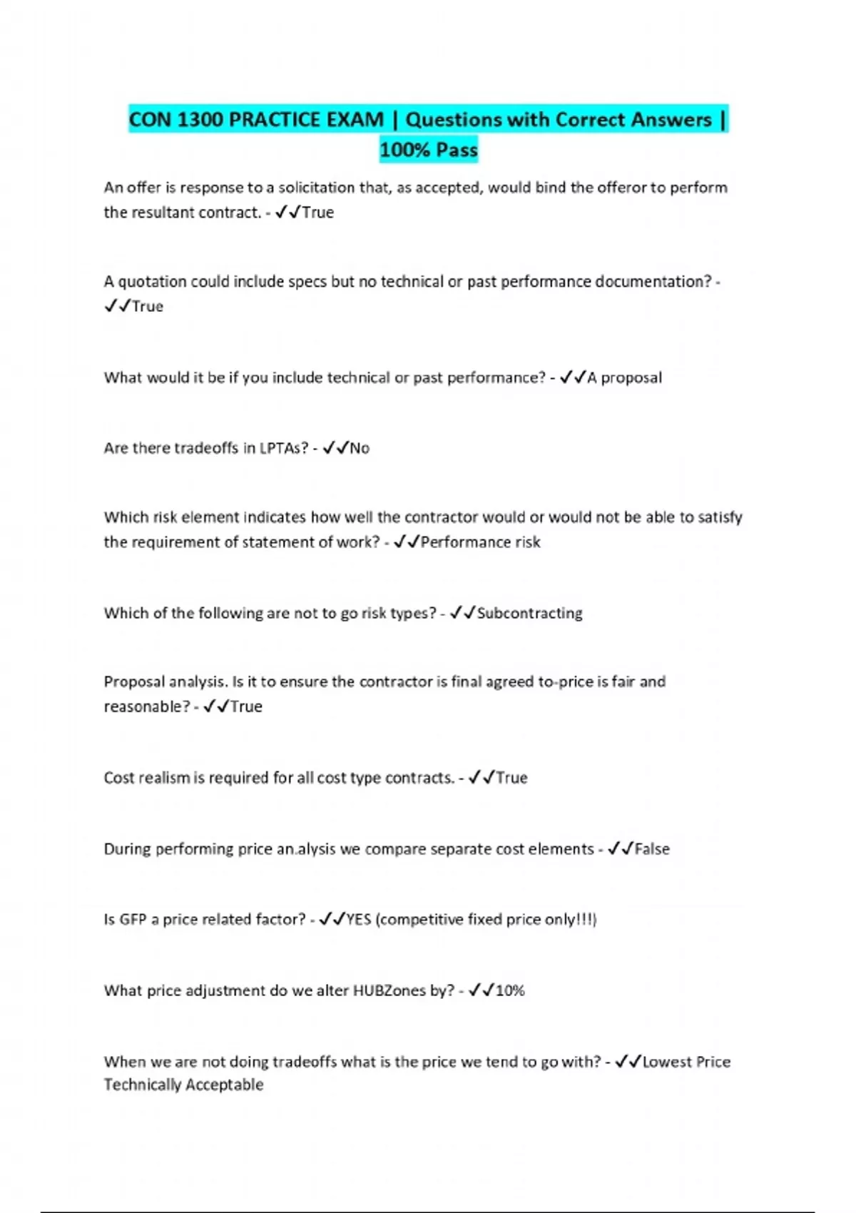 CON 1300 PRACTICE EXAM | Questions with Correct Answers | 100% Pass