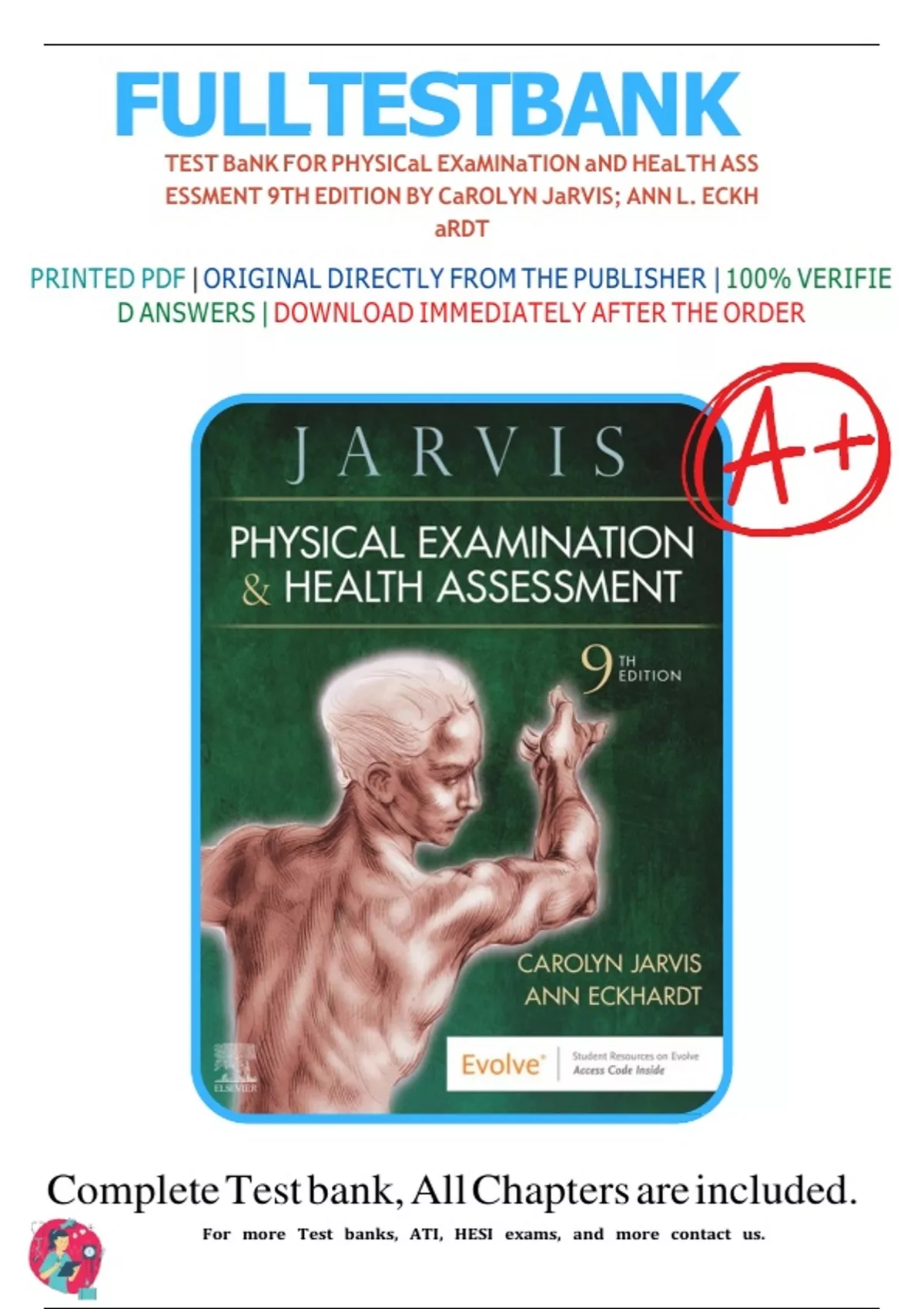 TEST BANK FOR PHYSICAL EXAMINATION AND HEALTH ASSESSMENT 9TH EDITION BY CAROLYN JARVIS; ANN L. ECKHARDT
