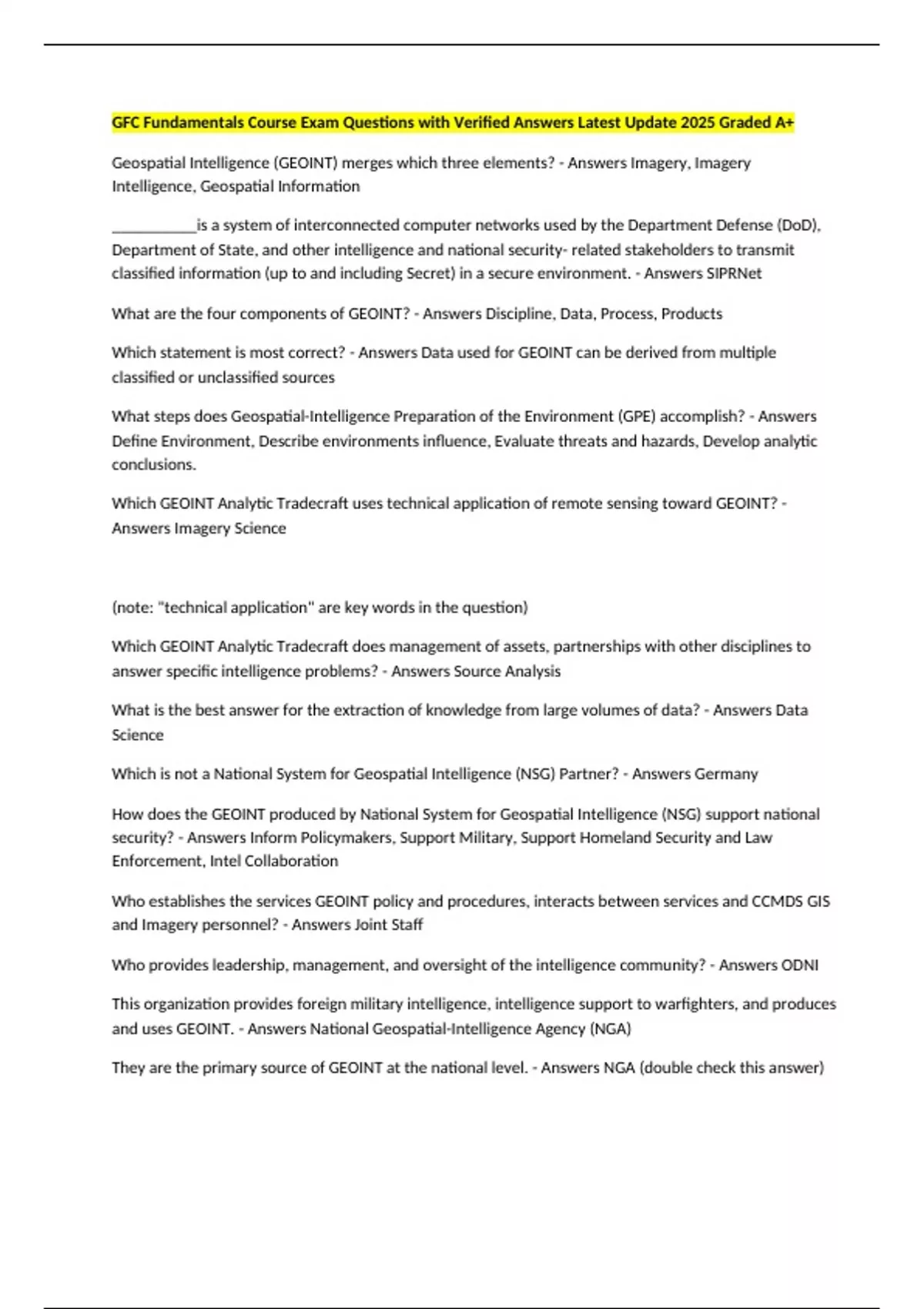 Which statement is most correct? - Answers Data used for GEOINT can be derived from multiple