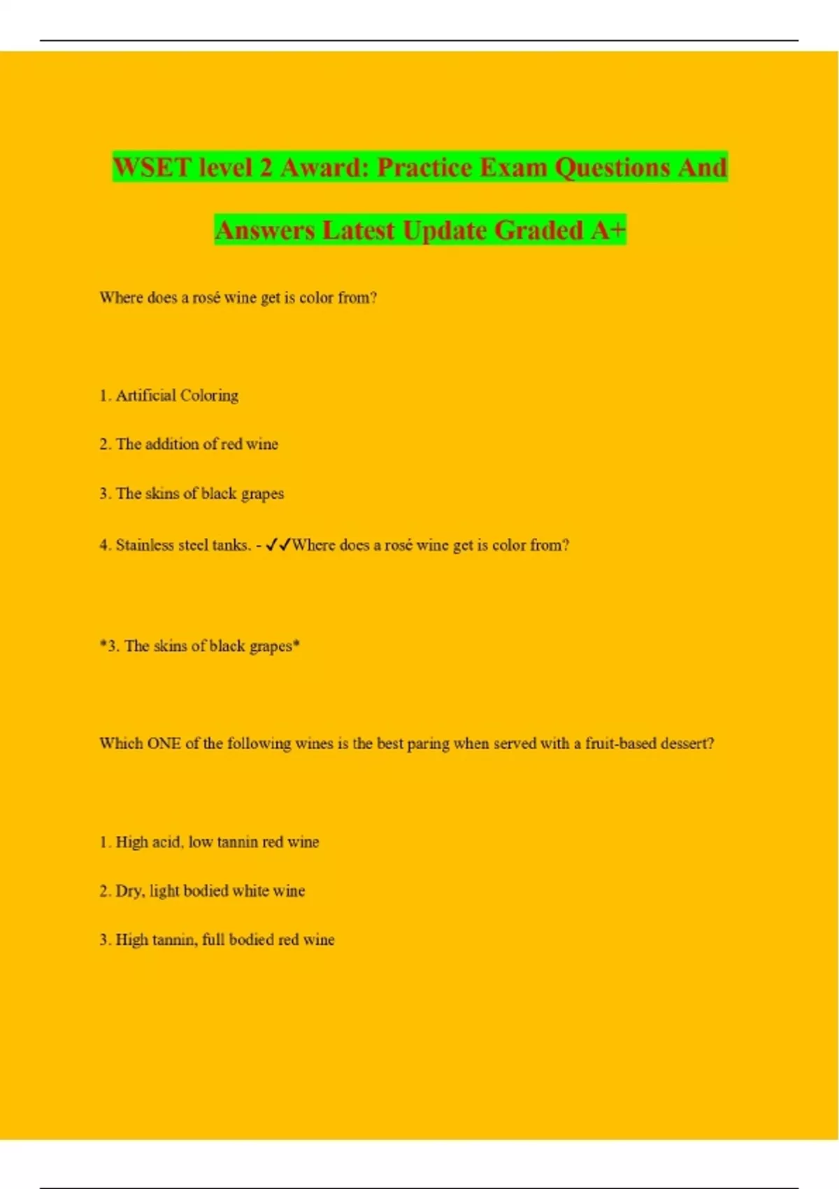 WSET Level 2 Exam Questions And Answers Latest Update Graded A+