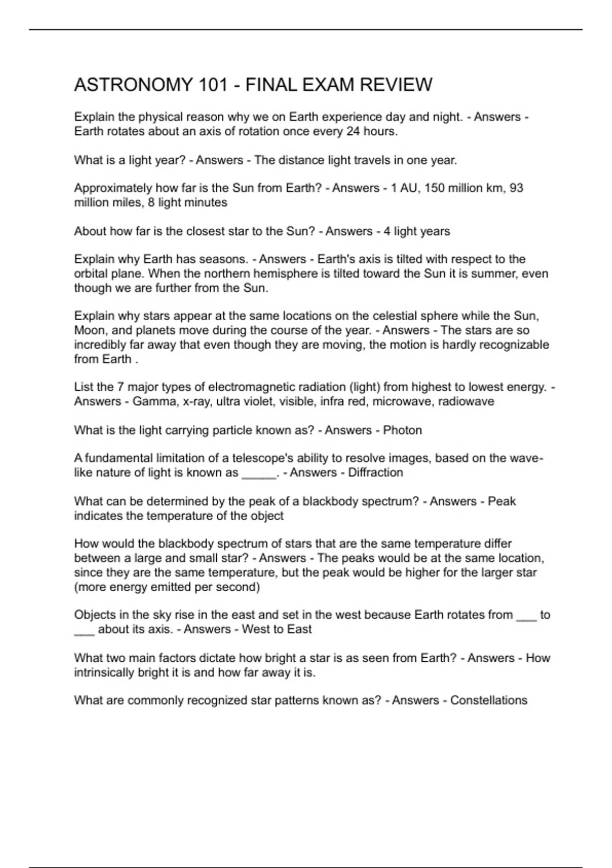 ASTRONOMY 101 - FINAL EXAM REVIEW